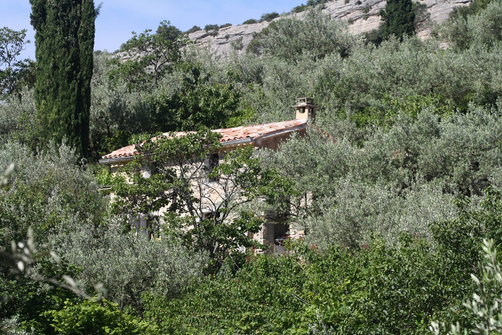 Cabanon Provençal en pierre, restauré , terrasse sous treille, un coin de paradis avec beaucoup d'espace au milieu des oliviers, un bois de chênes- verts, des palmiers,agaves,lavandes,figuiers, thym ,romarin,cerisiers,abricotiers....