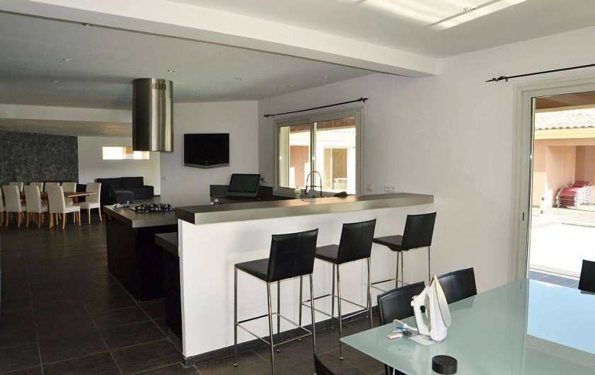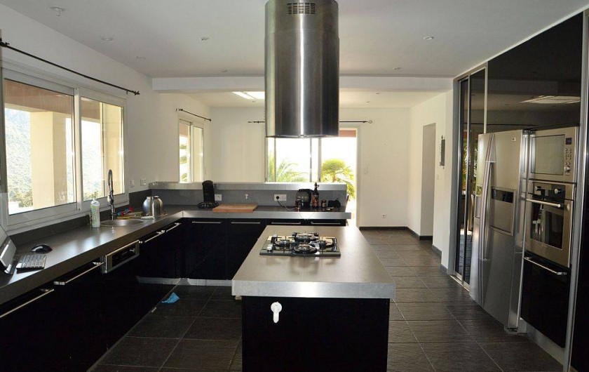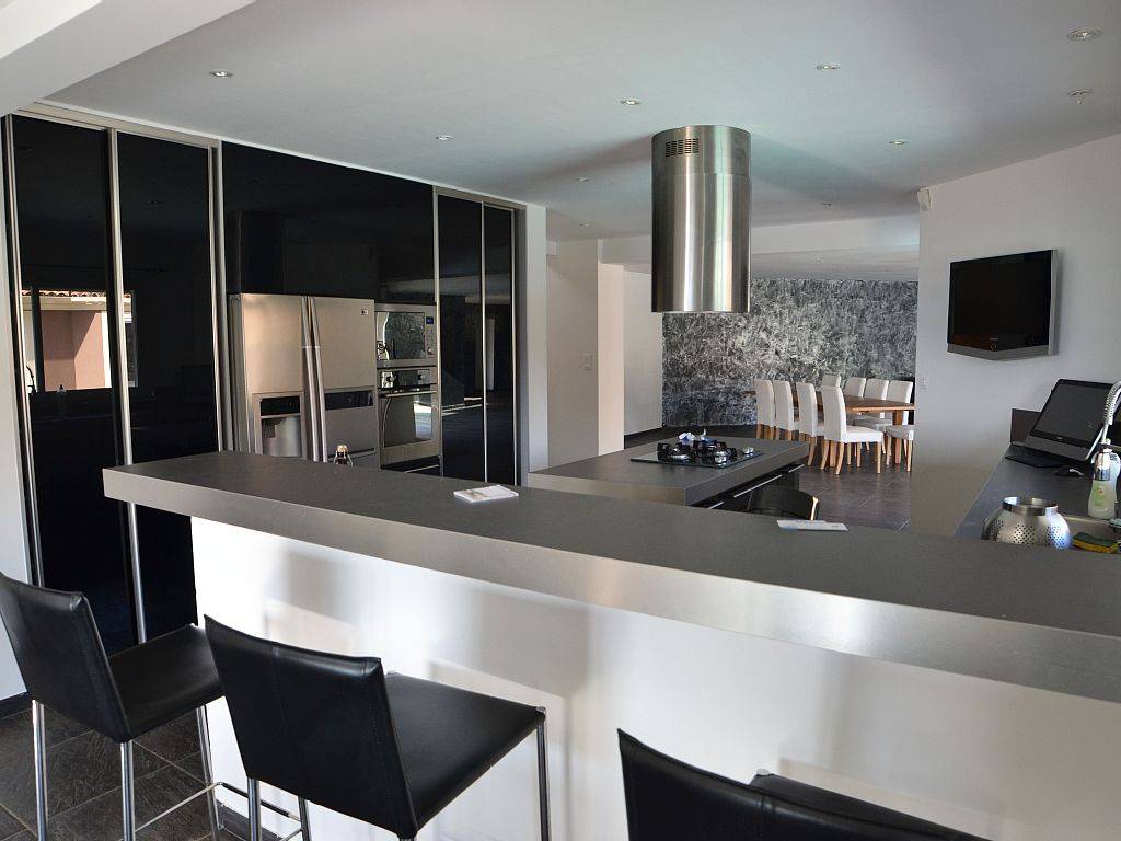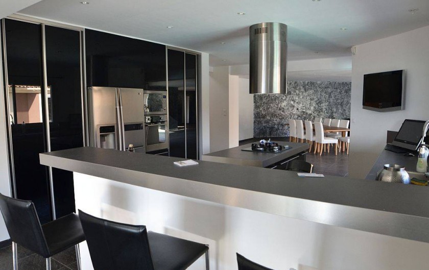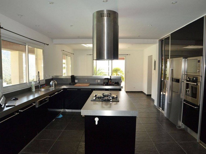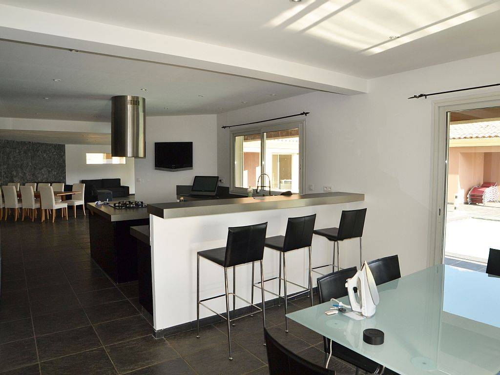 La cuisine américaine est entièrement aménagée et équipée - frigo américain avec distributeur automatique de glaçons - , avec un espace ouvert sur le grand salon salle à manger. Celui-ci est équipé d'un grand écran plat de haute qualité, avec lecteur multimedia et Bluray. Le salon est agrémenté de confortables canapés et d'un coin feu. Vous disposez également d'une buanderie avec machine à laver, séchoir à pendre, planche et fer à repasser.