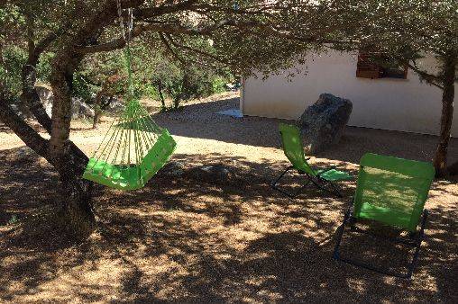 Au fond du terrain sur le retour de la plage, vous pourrez profiter de la douche exterieure pour vous rincer a l'eau douce avant de rentrer vous reposer dans un transat a l'ombre des arbres (ou dans la chaise hamac).