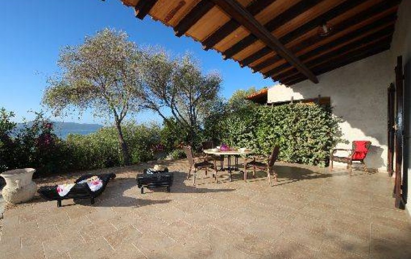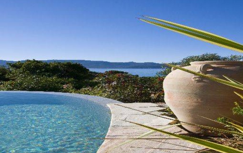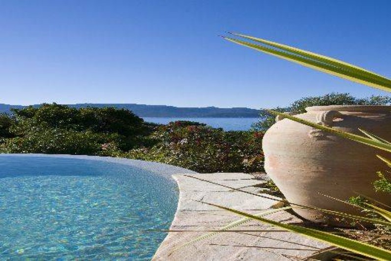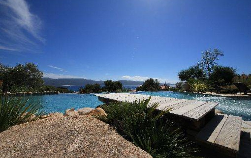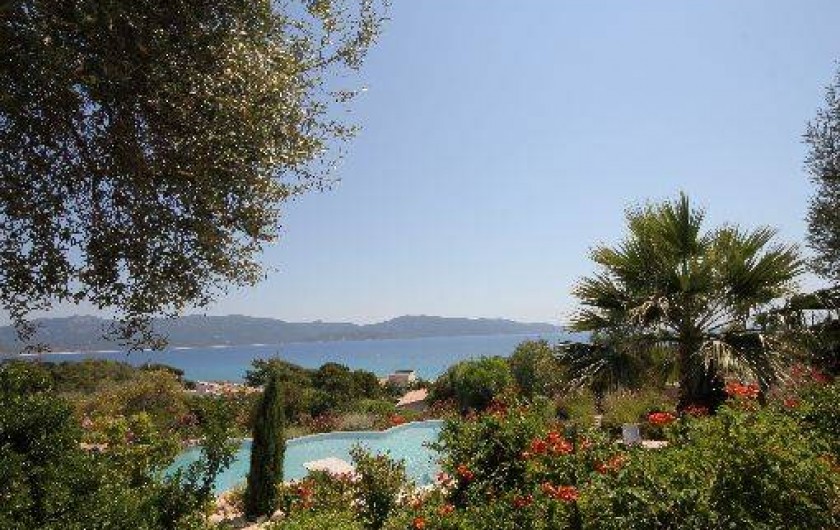 sur le Golfe du Valinco et Propriano, avec une piscine à débordement, banquette balnéo et pataugeoire pour les enfants.
