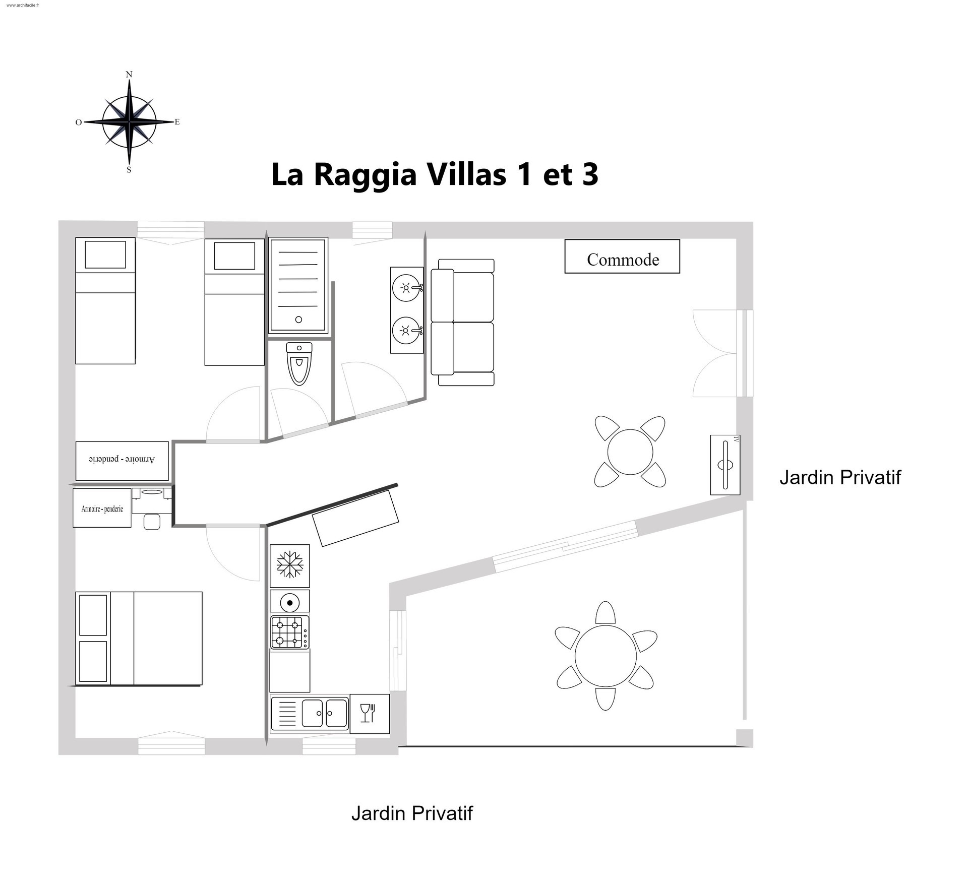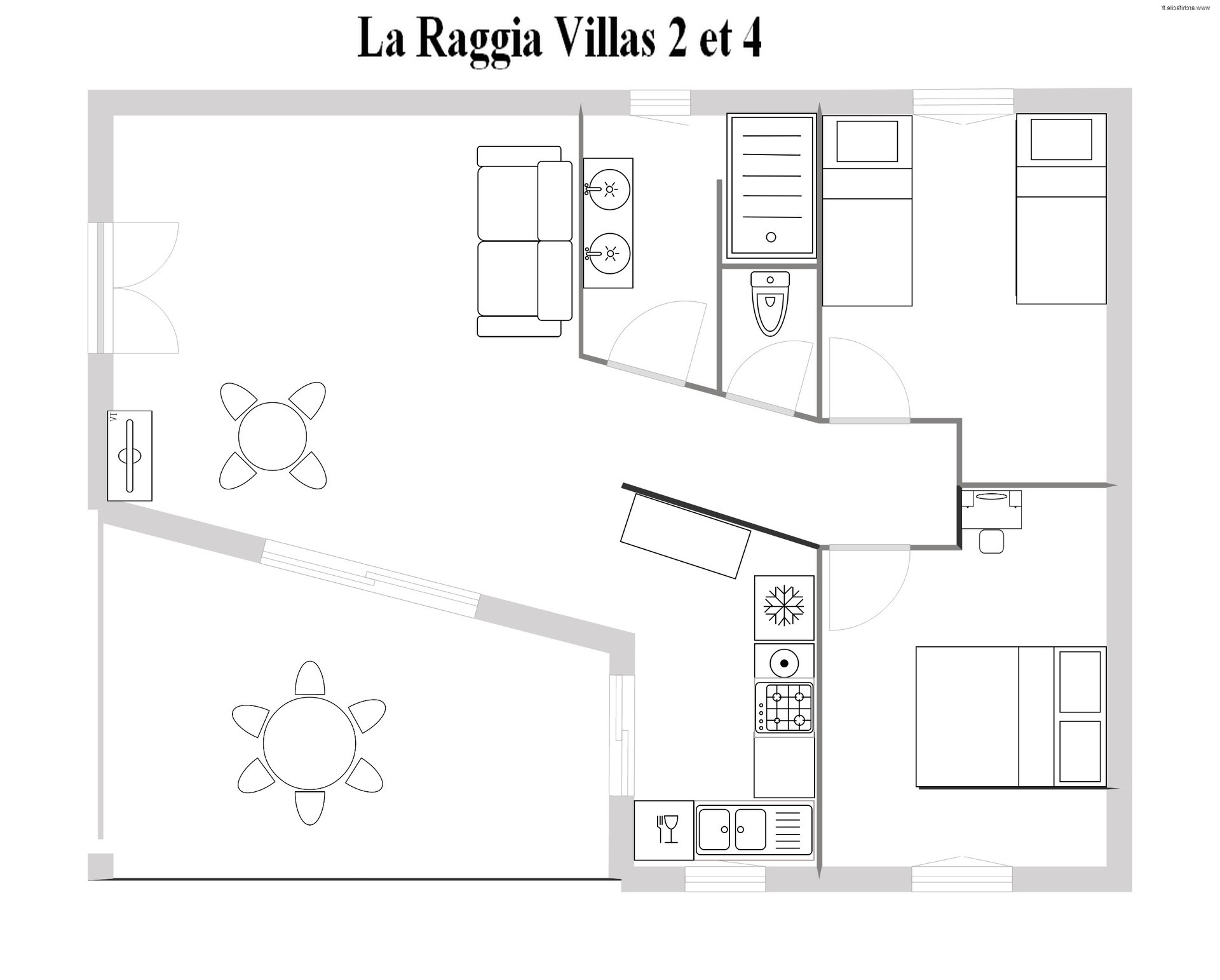 Chacune des quatre villas possède 2 chambres séparées, un séjour et une terrasse couverte, procurant calme et confort, propices au repos.