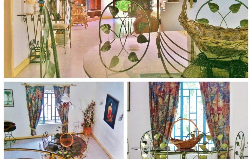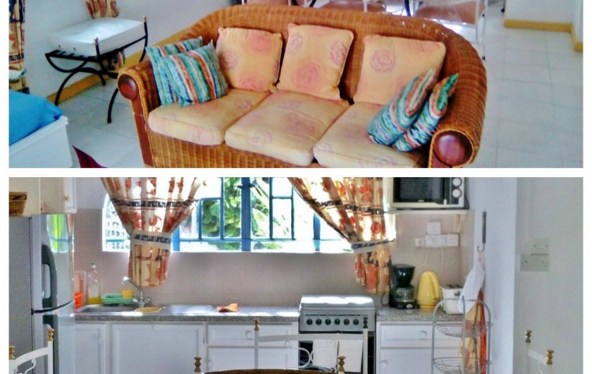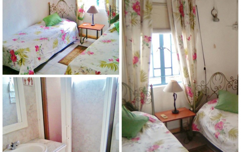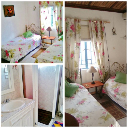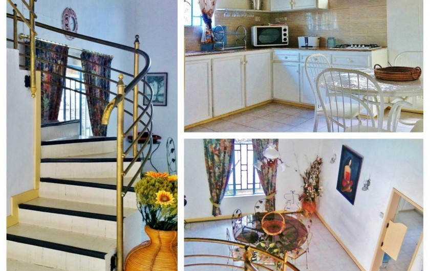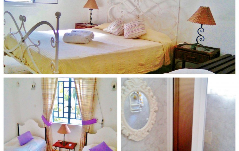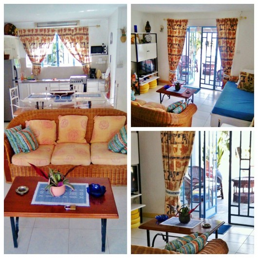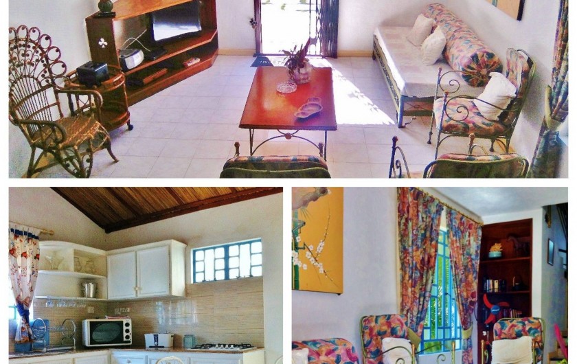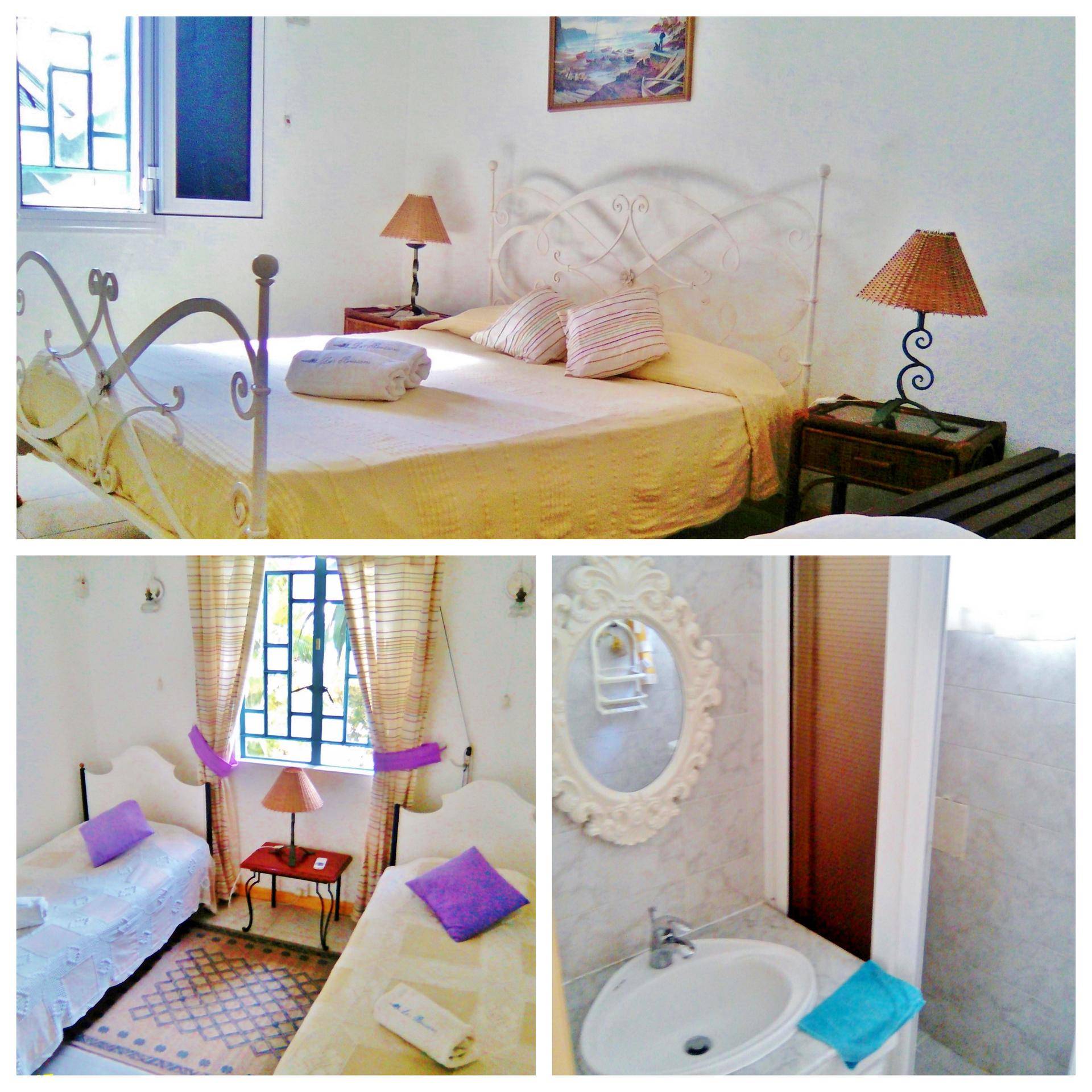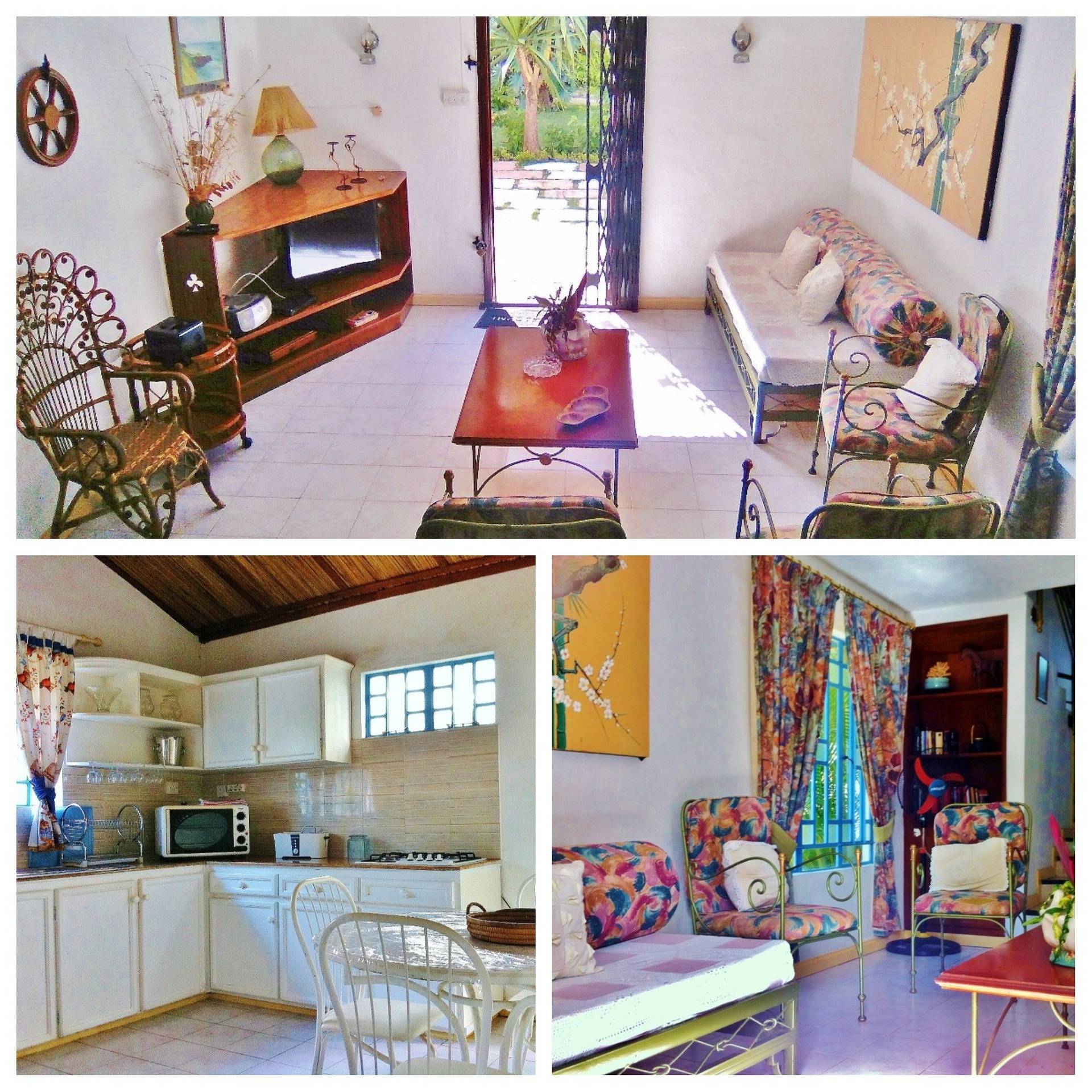 1 Charmante villa pour 6-7 personnes de 150m carré, avec 3 chambres à coucher climatisées plus un divan dans le salon, à 120 euros en haute saison de Novembre à Février et 85 euros en basse saison de Mars à Octobre.