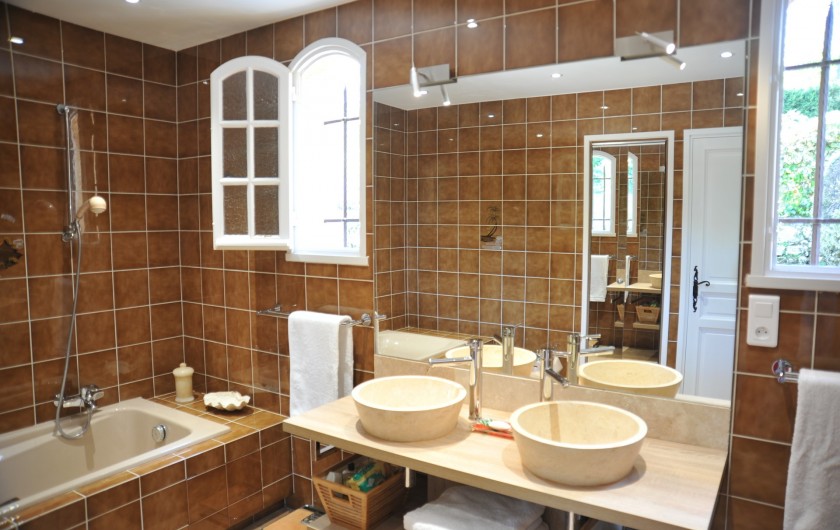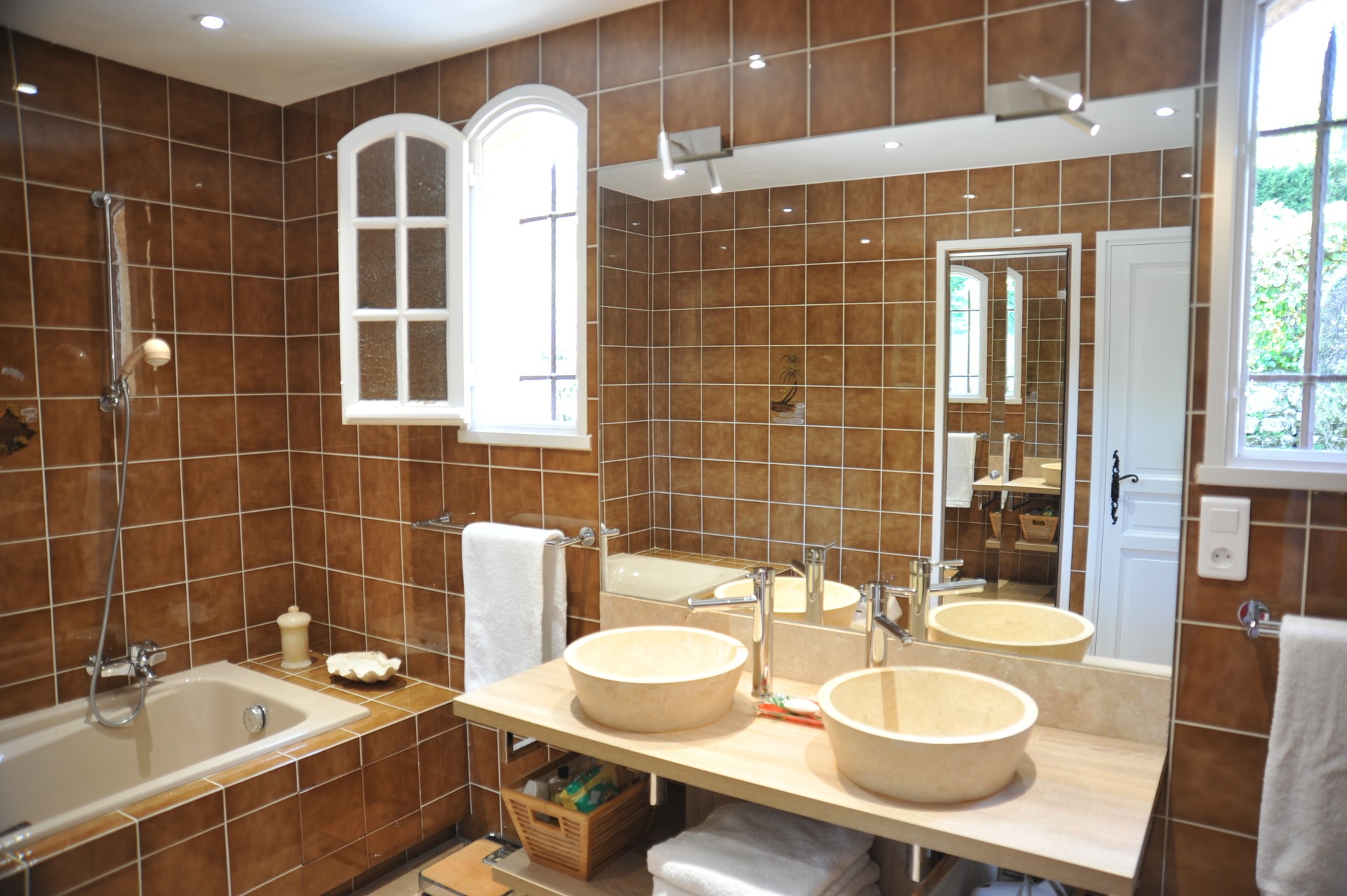 RDC : salon (40 m2) ouvrant sur une grande terrasse couverte. Salle à manger et cuisine équipée donnant sur une terrasse couverte. Cellier attenant à la cuisine. Toilettes avec lavabo dans l'entrée. Chambre (n°1) climatisée, avec lit de 160, grand placard, commode. Grande salle de bain avec baignoire et douche.