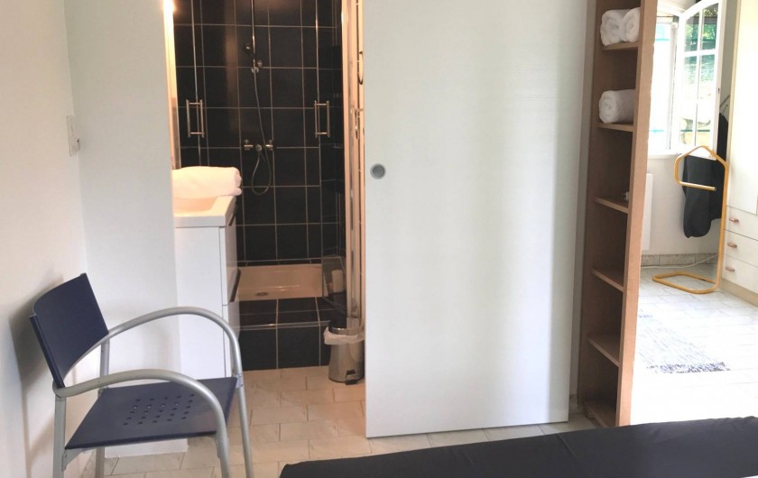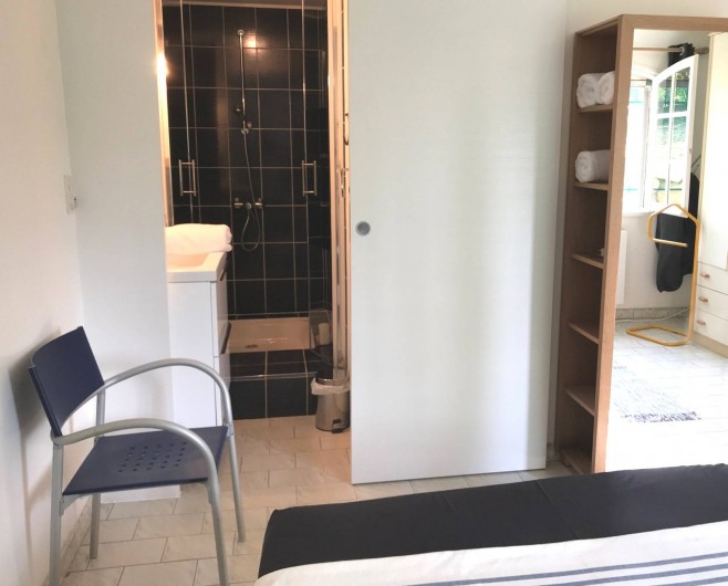 Rez-de-jardin: chambre parentale (n°4) avec lit de 140 et salle d'eau. Coin nuit enfant attenant avec lit de 90. WC séparés