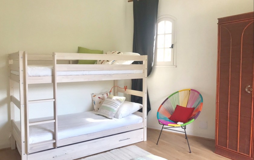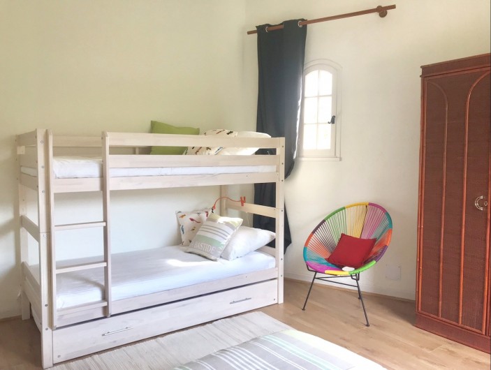 1er étage: Chambre (n°2), climatisée, avec lit 160, commode. Grande chambre (n°3), climatisée, avec lit superposé 3 couchages (90) et