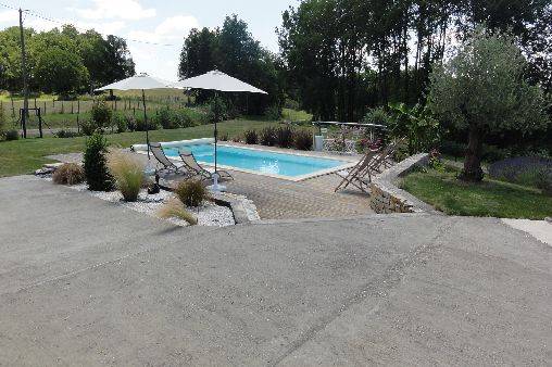 Une piscine 3,5 x 7,5m avec un escalier sur toute sa largeur, profondeur 1m mini à 1,7m maxi.