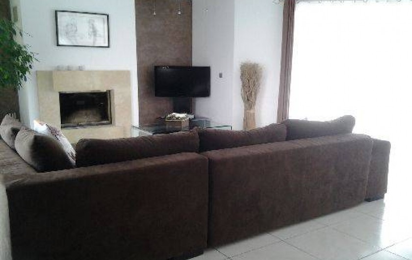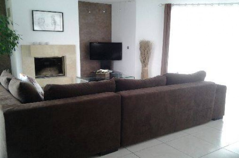 Un grand salon, salle à manger, avec TV et grand canapé-méridienne. Accès WIFI gratuit.
