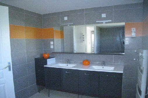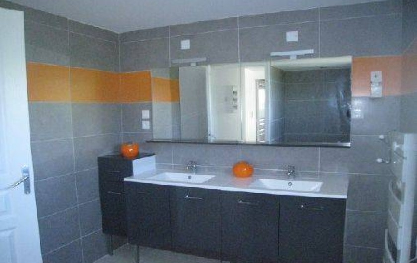 accès handicapé avec douche italienne, deux vasques, sèche-serviettes...