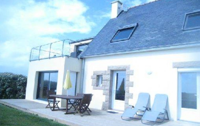 Magnifique villa rénovée en 2013, de 130 m2, au cœur de la Baie d'Audierne, à Plovan sur mer. La maison est lumineuse, tournée vers la mer, sans vis à vis et offre un panorama à 180° de la Pointe du Raz à la Pointe de la Torche. Elle se compose au rez-de-chaussée d'une grande cuisine contemporaine entièrement équipée et donnant sur la mer, d'un salon-séjour très spacieux avec cheminée, télé 82 cm (satellite et TNT), terrasse bois, meubles de jardin, barbecue