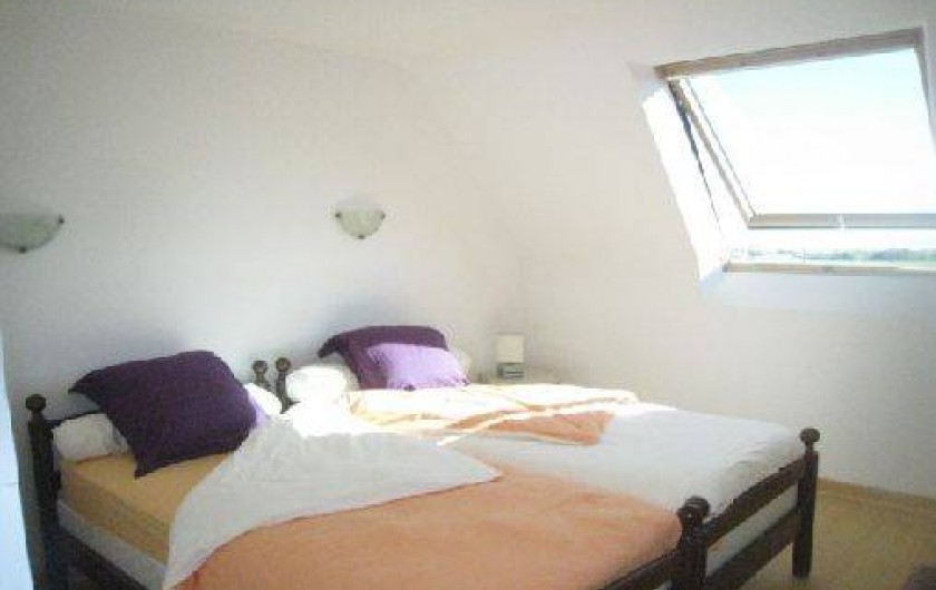 Étage: 2 chambres avec 2 lits de 90x190, grand velux 118x140 fermeture solaire, salle d'eau, toilettes et pièce à vivre donnant sur terrasse surplombant la baie, vue panoramique superbe ! idéal pour l'apéritif (petit réfrigérateur à votre disposition)