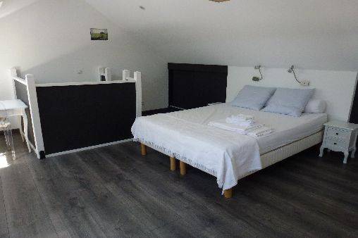 Au second etage,une chambre d'environ 30 m2 equipee d'un lit de 160x200 possibilte d'admirer le paysage par deux velux