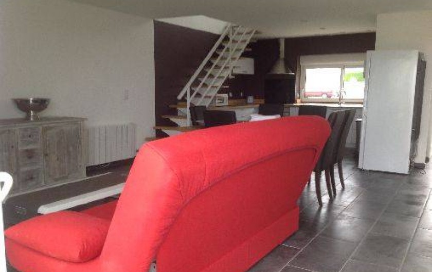 Vous profitez d'un espace rez de chaussee avec cuisine ouverte toute equipee donnant sur un salon salle a manger qui vous