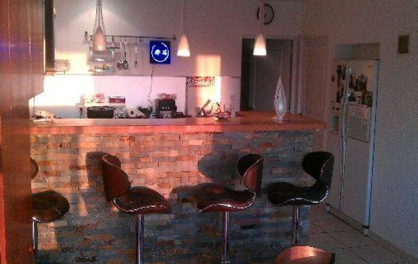 - Une cuisine américaine entièrement équipée et meublée, une plaque 4 feux gaz, un micro