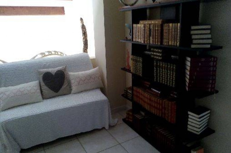 - un petit salon bibliothèque avec un grand placard
