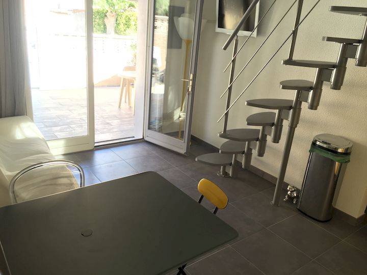 villa avec terrasse dans une résidence en bord de plage, sans route à traverser. Calme et à proximité commerces, restaurants. Parking privatif.