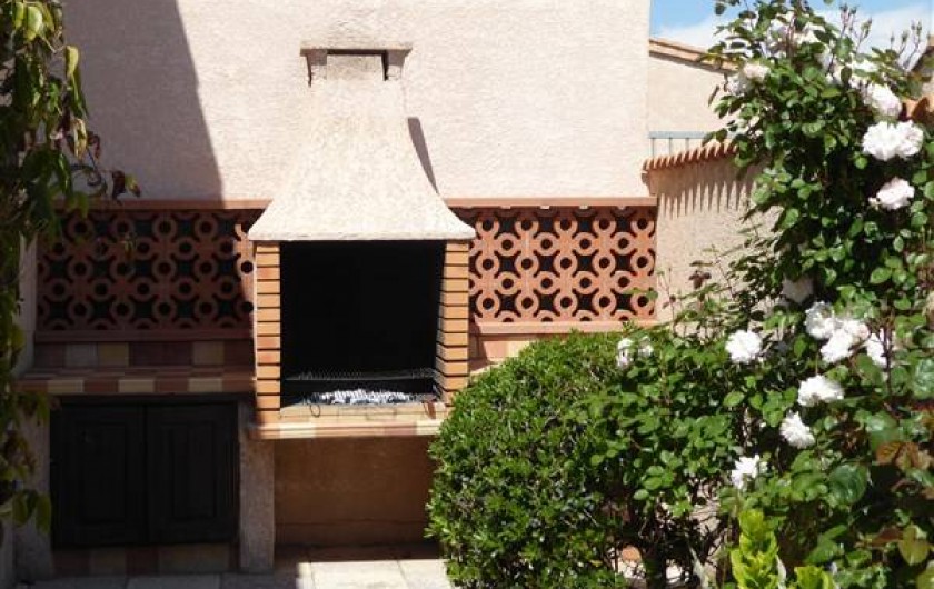 Exposition Sud-Est. Terrasse Est avec barbecue en dur. Pergola ombragée sur la terrasse Sud (table, chaises, 4 lits de jardin, parasol).