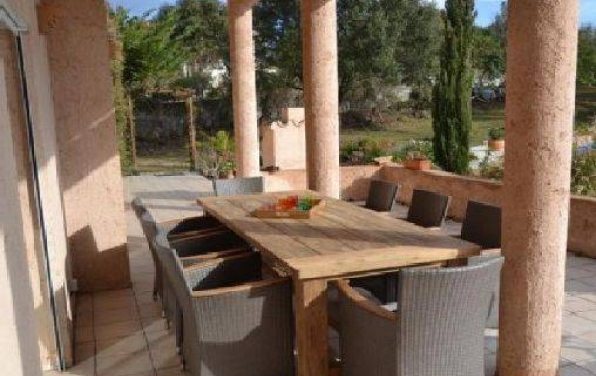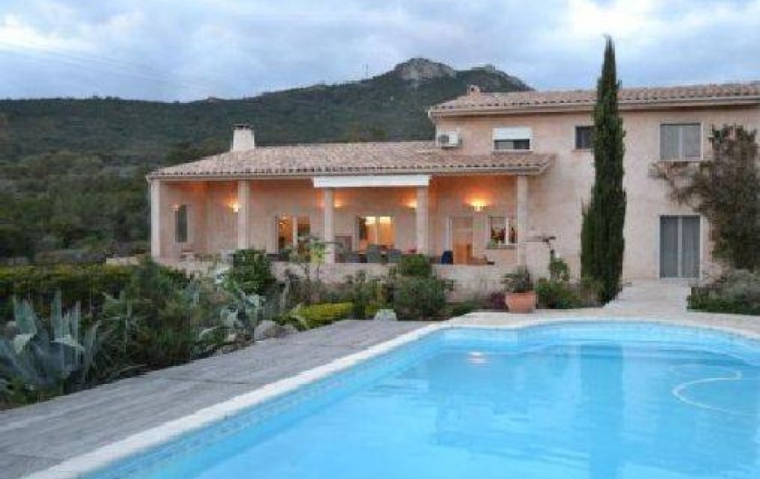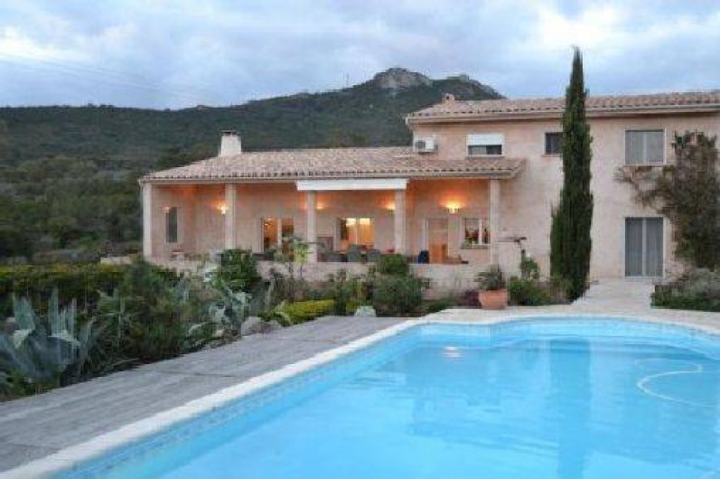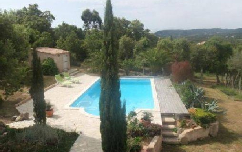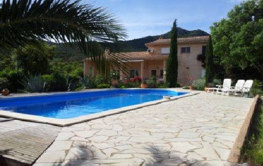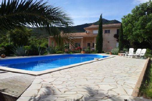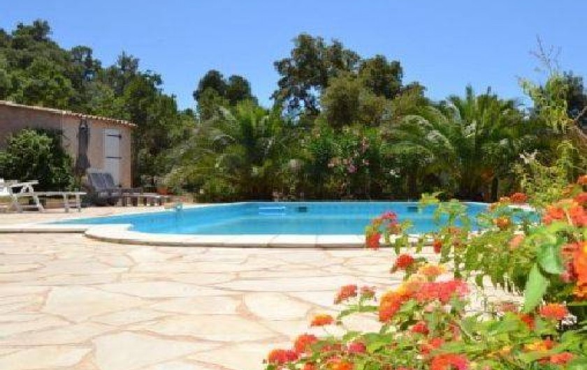 Grande terrasse couverte de 60 m2, jardin arboré et fleuri de 1900 m2 (clôturé), vue dégagée sur la montagne corse et le maquis.