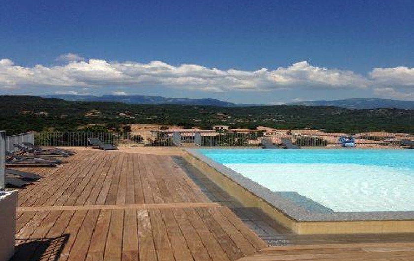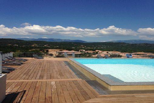 Dans la résidence de charme vous profiterez de tout le confort ainsi qu'un accès gratuit à la grande piscine miroir à débordement de 300 m2 avec ses transats et sa vue sur la baie de Santa Guilia au sein d'un cadre naturel préservé et arboré de magnifiques plantes. La résidence implantée au cœur d'un parc privé d'1 hectare proche des plages et des commodités est sécurisée avec un gardien et un portail digicode.