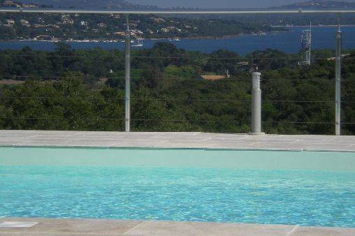 Villa récente 165m², avec piscine 12mx5, sécurisée, vue mer, 5 mn du centre ville à pieds, proche des plus belles plages de Corse, surplombant le golfe de Porto Vecchio. Terrasse éménagée 240m² avec cuisine exterieure. Terrain 2100m². Prestations de haut de gamme, 8 couchages, 4/5 chambres, 3 salles d'eau, 3 w.c, cuuisine salon salle à manger 80m²+ salon n°2 avec Kitchenette, pouvant servir aussi de chambre avec convertible; Climatisation, TV 3D, volets roulants, internet wifi. Animaux non admis.