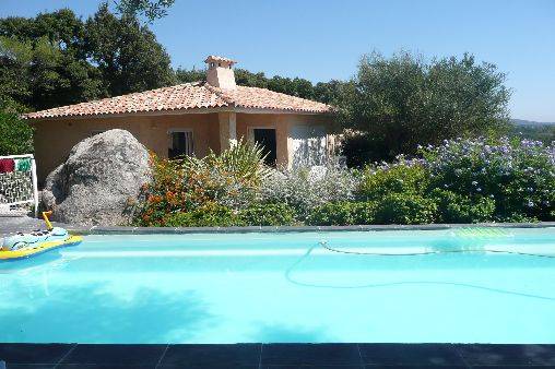 A louer villa en Corse à Porto Vecchio proche de la mer (700 m de la plage) et à 6 km du centyre ville. Cette villa avec piscine comprend une cuisine toute équipée accès terrasse, un salon et une salle à manger accès terrasse, trois chambres dont une accès terrasse, 1 salle de bains, 2 salles d'eau, 3 wc. un pool-house avec une salle d'eau + wc, une chambre indépendante.