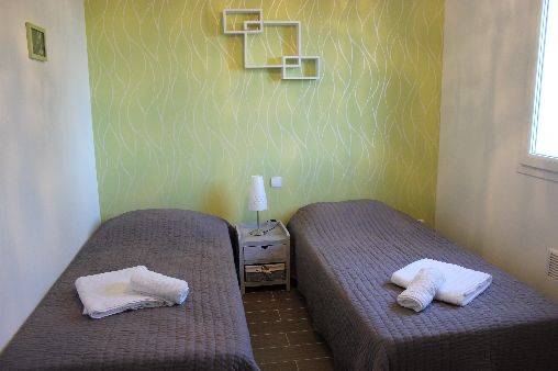 Au rez de chaussée, une chambre avec 2 lits de 1 pers., une chambre avec un lit 2 pers. donnant directement sur la piscine, une salle de bain, 1 wc indépendant, une cuisine entièrement équipée ouvrant sur le séjour et le salon ouvrant sur la terrasse, ou vous pourrez prendre vos repas ou vous détendre sur les transats ou profiter la piscine, en famille ou entre amis.