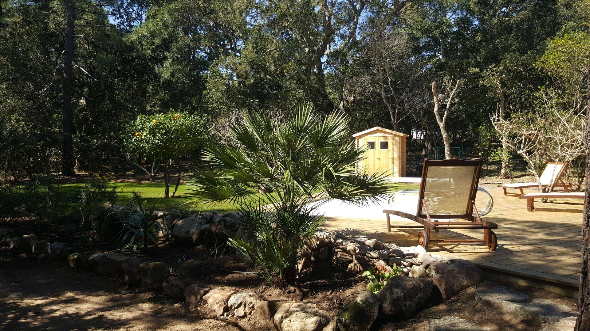 Dans le jardin il y a des arbres fruitiers mais aussi la végétation d'origine de la Corse. En saison une école de voile se trouve à la plage et on peut y louer des planches à voiles, des kayaks... ou y prendre des cours. Les premiers supermarchés et restaurants se situent à environ 800-900m.