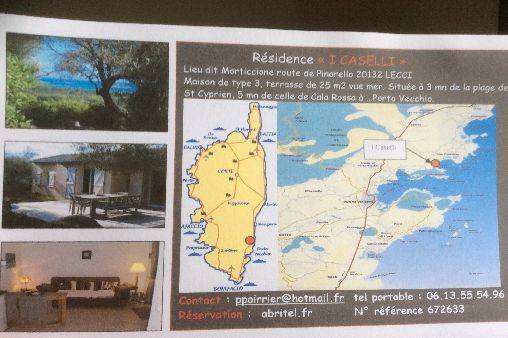 de porto-vecchio, proche du joli port de pinarello, des piscines naturelles de cavu et 5 mn de cala rossa et St Cyprien.