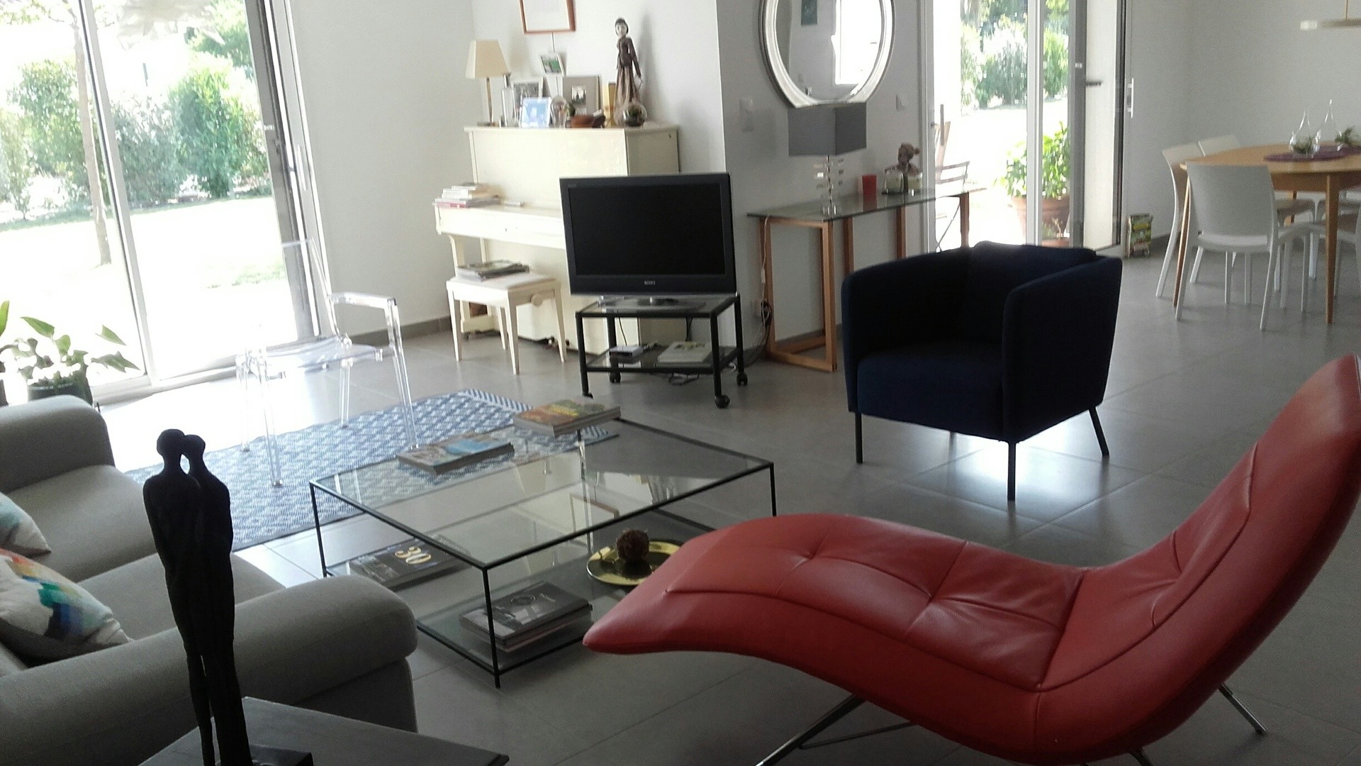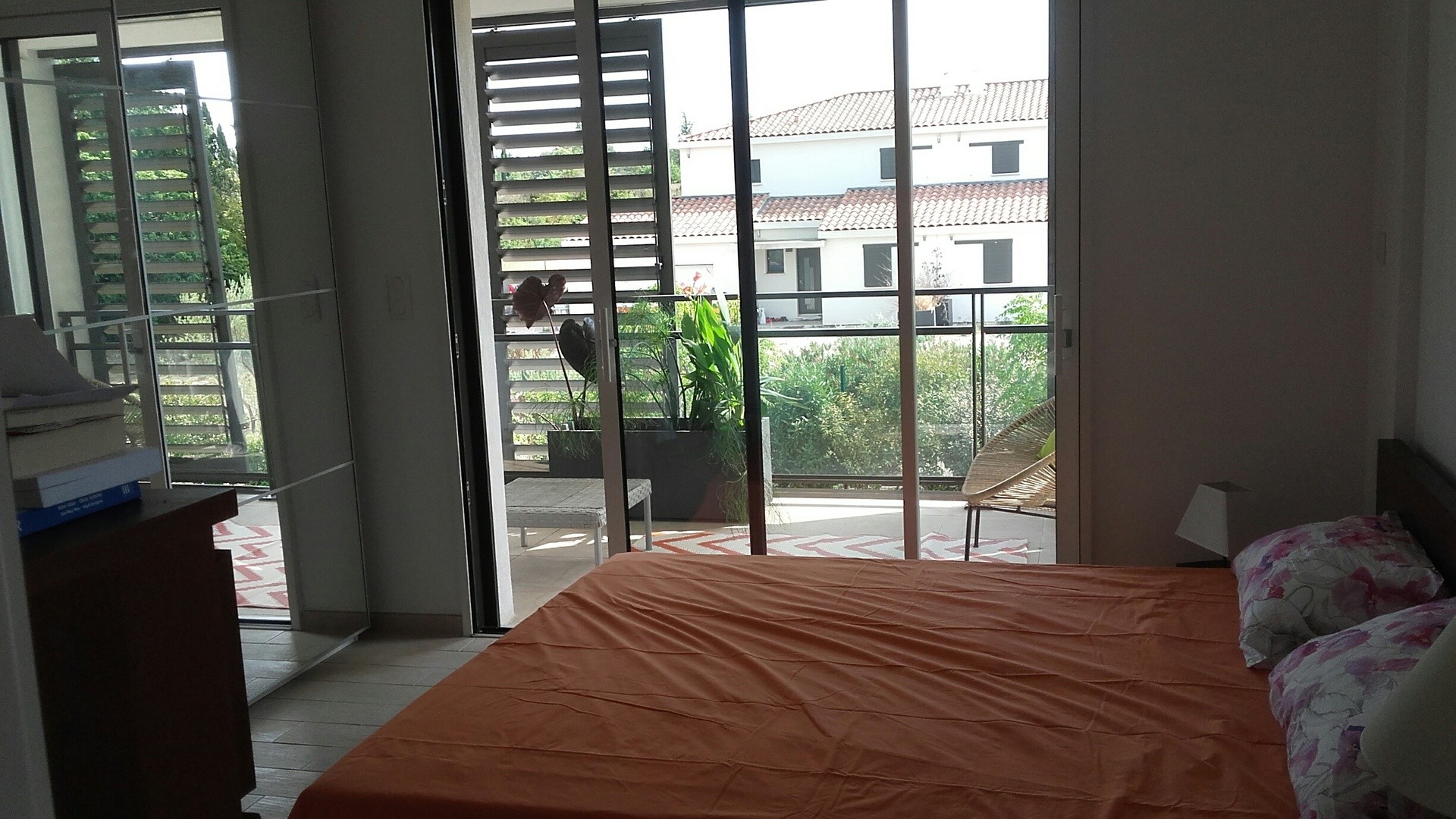 Loue VILLA CONTEMPORAINE de 140m² et piscine de 9 sur 4 mètres dans vaste jardin sans vis-à-vis AU CALME et tout près d'AIX-en-PROVENCE . Au rez-de-chaussée, séjour/cuisine de 55 m² donnant sur terrasse exposée au Sud ombragée par un store électrique, 1 chambre d'un grand lit de 160 ou de deux lits de 80 sur 2 m. et sa salle d'eau , 1 cellier , 1 WC . A l'étage, 3 chambres dont 1 parentale , lit de 160 sur 200 et sa salle de bain, 1 autre lit de 140 sur 200 : les deux donnent sur un balcon-terrasse large , 1 autre chambre de deux lits simples , 1 salle d'eau pour ces deux chambres,