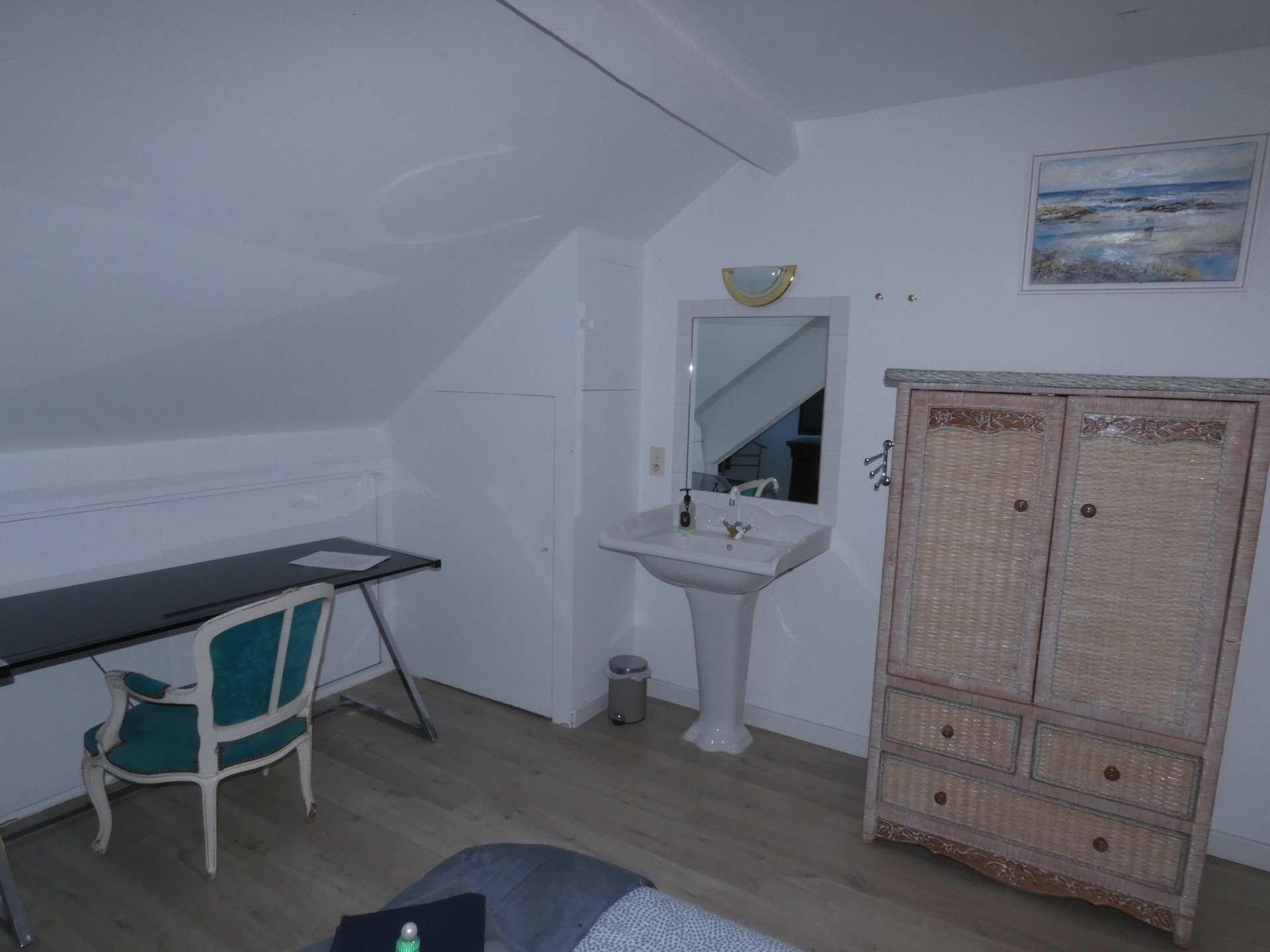 Au 2e étage, un palier –petit salon ouvre sur un couloir desservant quatre chambres avec lavabo et une salle de bains-wc.