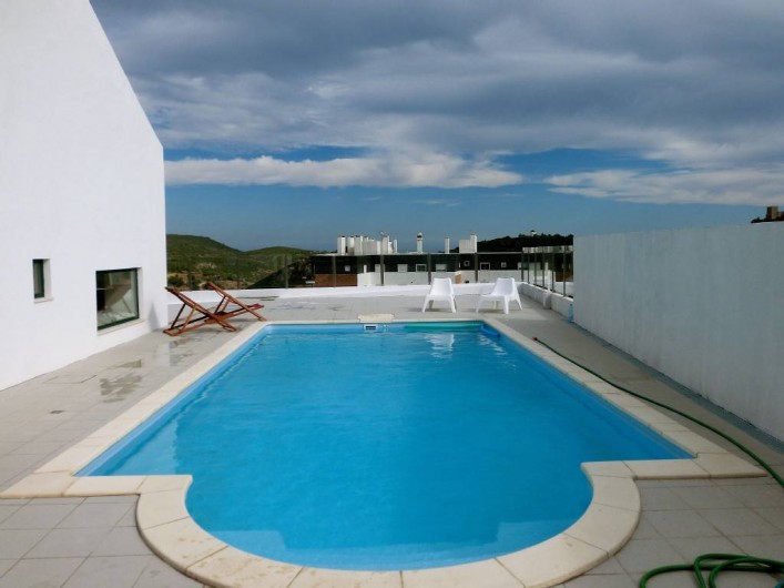 Maison typique rénovée de 4 chambres et 3 salles de bains, avec piscine et 2 grandes terrasses, jardin, magnifique vue mer et château médiéval.