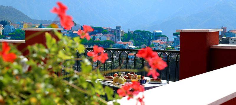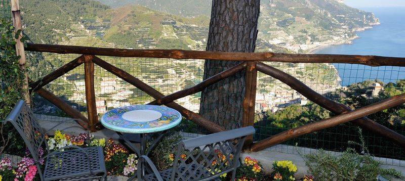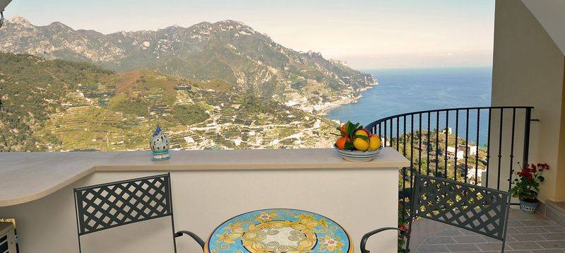 Ibisco : C'est un grand appartement de 50 m², situé au rez de chaussée de la villa. Il a une terrasse privée avec vue magnifique sur la mer, vue panoramique de Scala, Ravello et Villa Cimbrone, Ponton et les ruines de la basilique de Saint-Eustache, Atrani, Amalfi et quand il fait beau sur le Golfe de Salerne - Agropoli - Paestum.