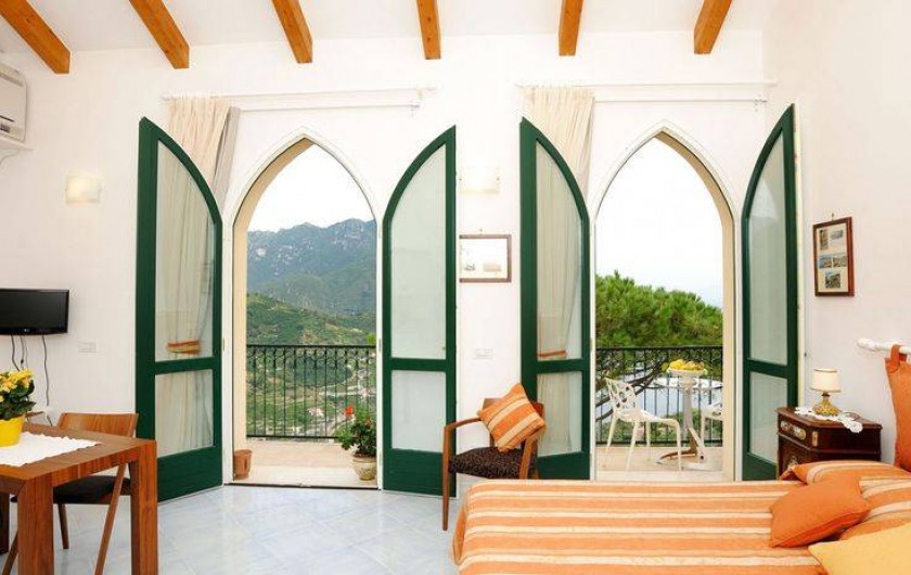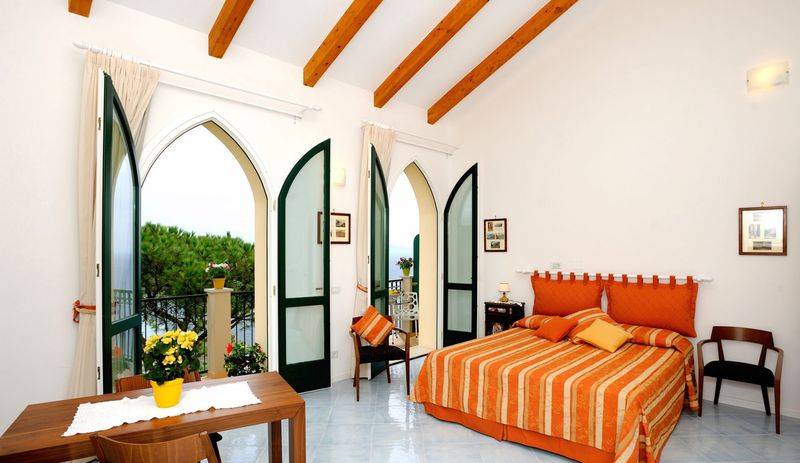 Ortensia : C'est une chambre double avec hublots vue mer, vue panoramique sur Scala, Ravello et Villa Cimbrone. Il est situé au deuxième étage de la villa.