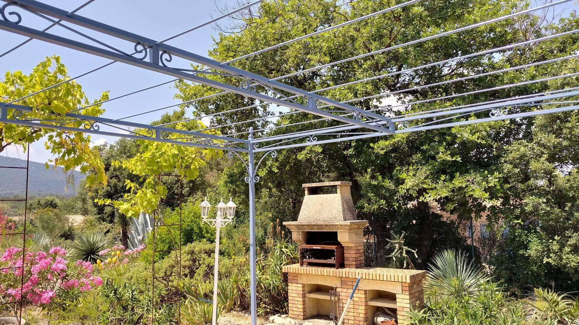 À mi-chemin entre la Côte d'Azur et la Provence verte, maison de plein pied soignée sur un grand terrain aménagé, vert et fleuri. L'intérieur lumineux comporte un grand living/salle à manger, une cuisine super-équipée ouverte, quatre chambres et deux salles de bains. Une grande buanderie donne accès au garage double. Le living donne sur une véranda et une grande terrasse avec barbecue en maçonnerie surplombée d'une pergola où s'accrochent des vignes. La piscine sous abri haut, protégée du vent, est entourée d'une deuxième terrasse et d'une plage pour les bains de soleil. Le … mobilier du living/salle à manger est en bois massif. Une cheminée et une télé à grand écran aident à passer agréablement les soirées ou quelque jour exceptionnel de mauvais temps. Lire moins Lire la suite