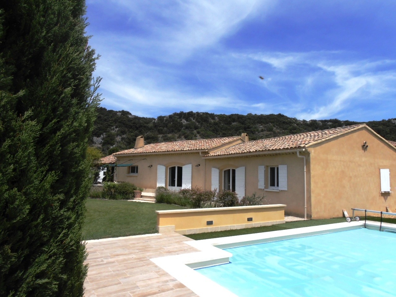 Nichée au cœur de la campagne gardoise, la villa 'Lou Souleil' propose un confort contemporain dans un cadre régional typique... Localisée à seulement 15mn du Pont du Gard,