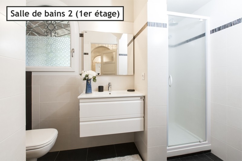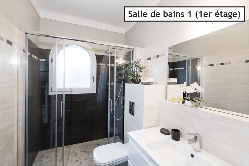 - Rez-de-chaussée : 4 chambres, séjour, cuisine équipée neuve, terrasse, 2 salles d'eau
