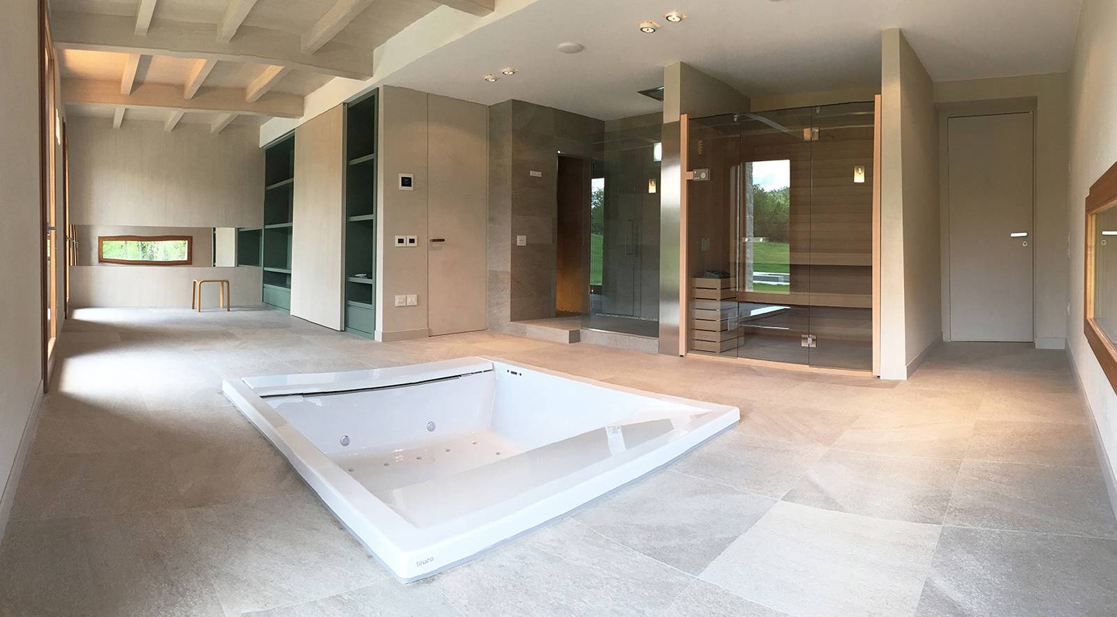 Au rez-de-chaussée se trouve l'espace bien-être, avec jacuzzi, sauna, hammam, chromothérapie et espace détente.