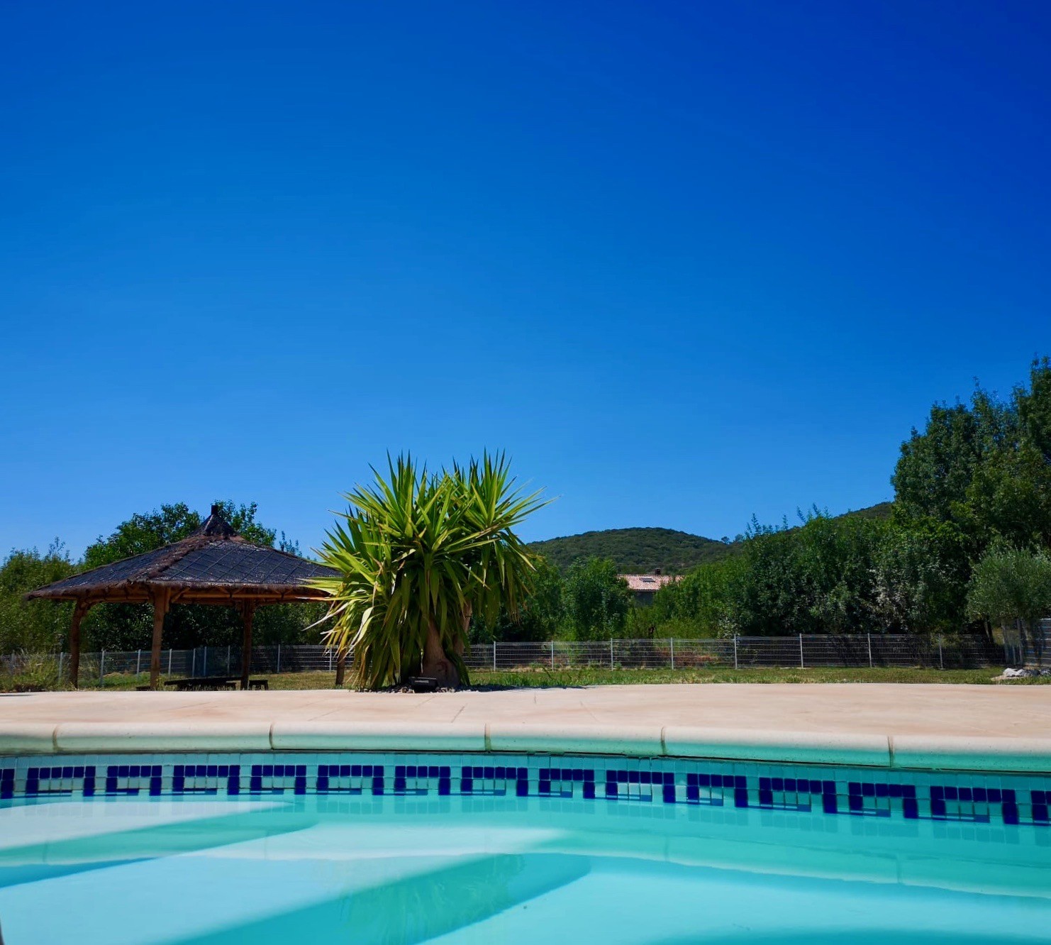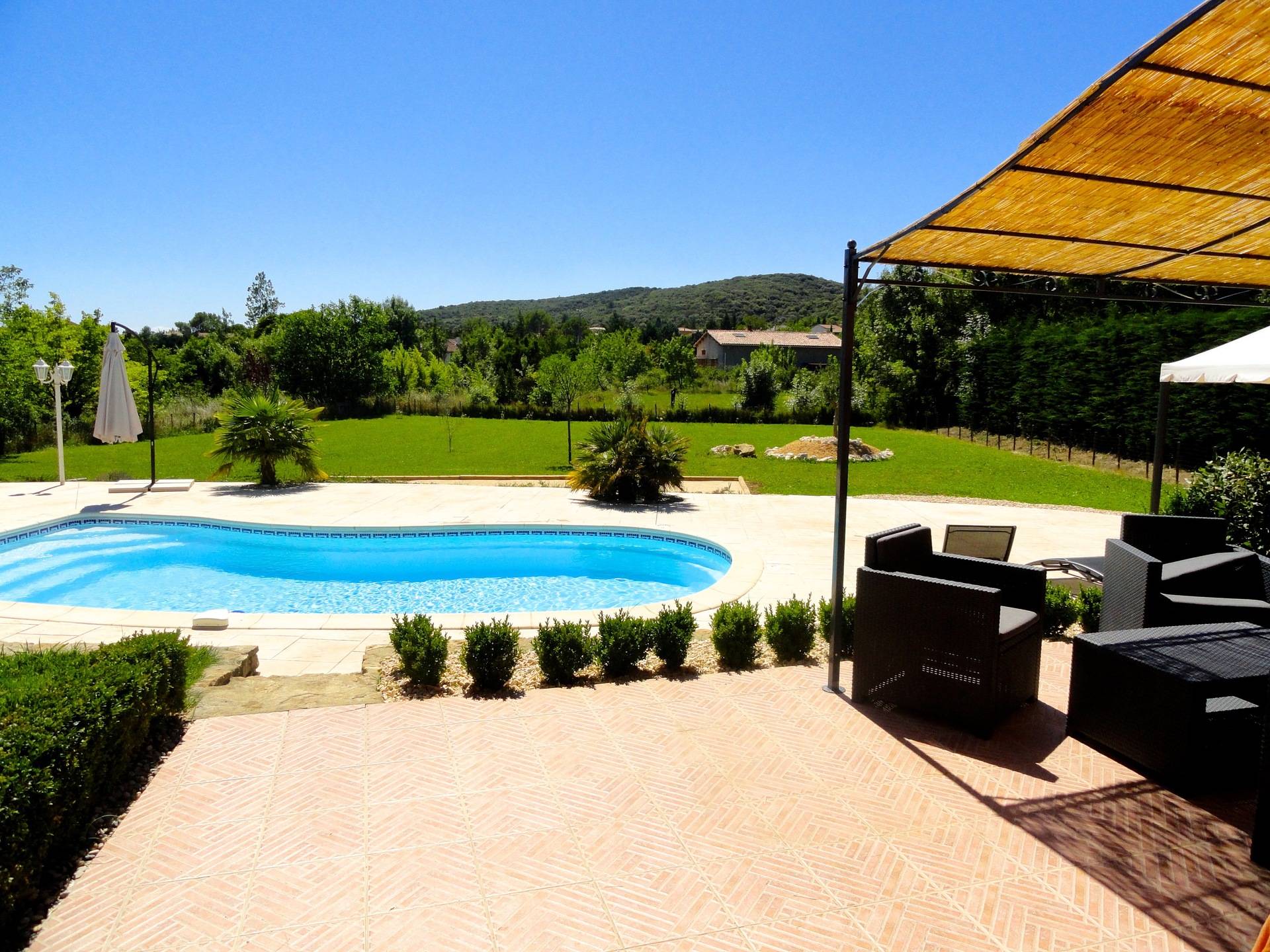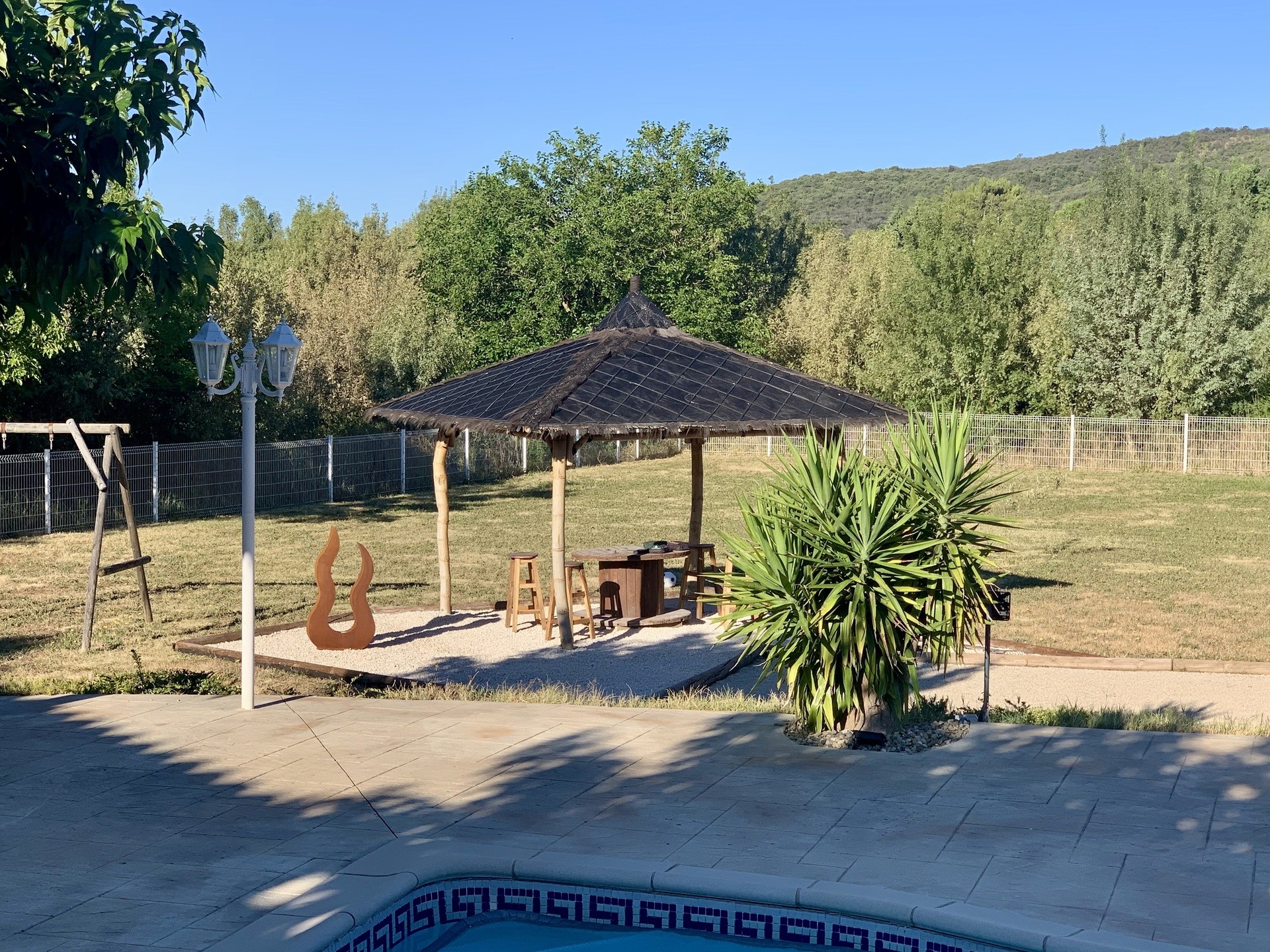 Propriété dans le Gard (Occitanie) sur grand terrain clôturé avec piscine de 8x4m chauffée par le soleil, terrain de pétanque privatif, Gazebo, barbecue, etc.