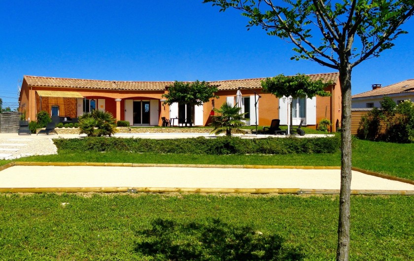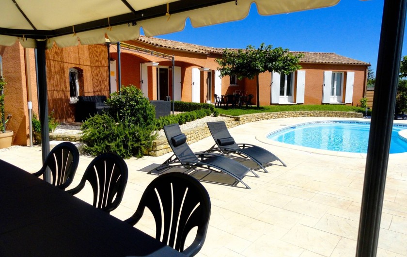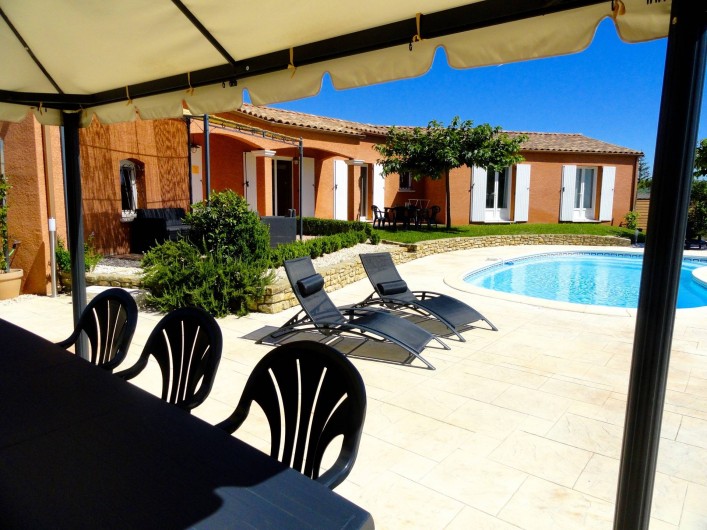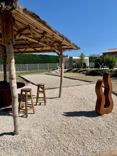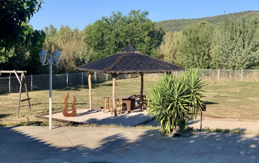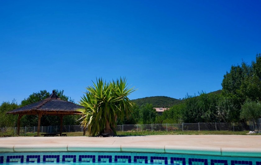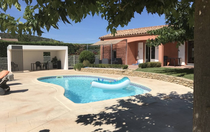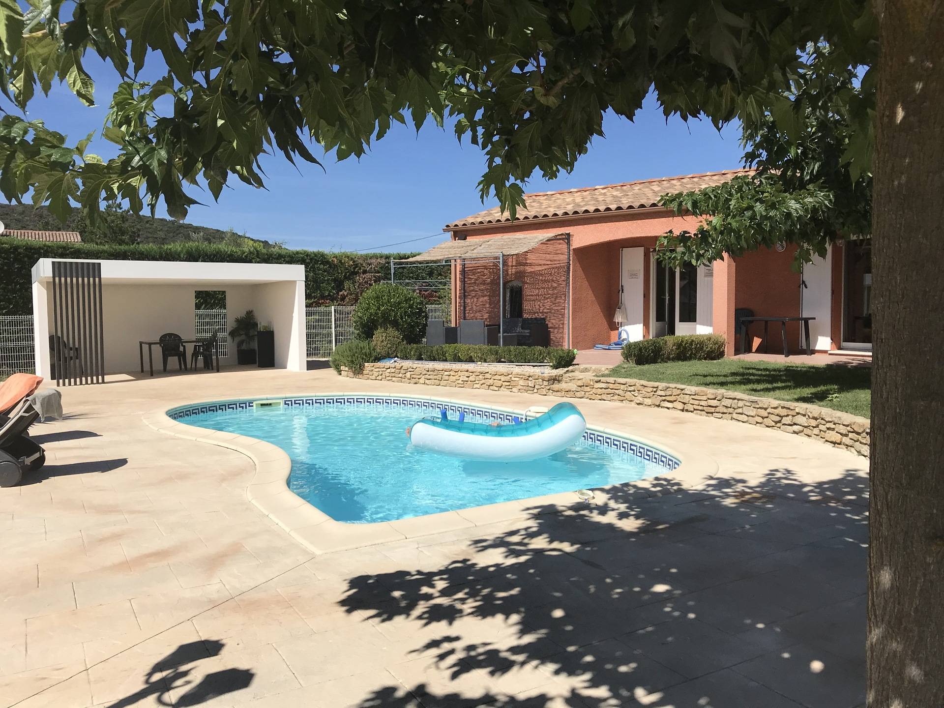 Propriété dans le Gard (Occitanie) sur grand terrain clôturé avec piscine de 8x4m chauffée par le soleil, terrain de pétanque privatif, Gazebo, barbecue, etc.