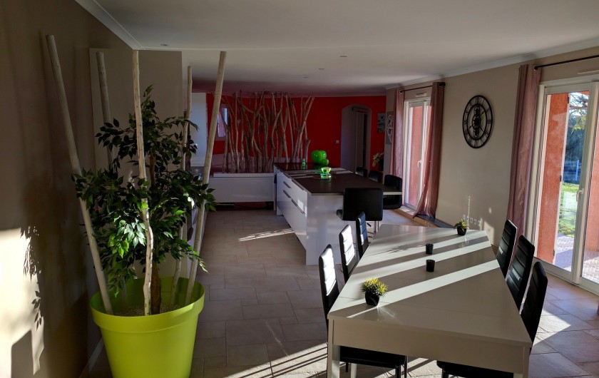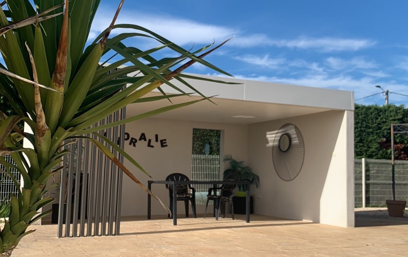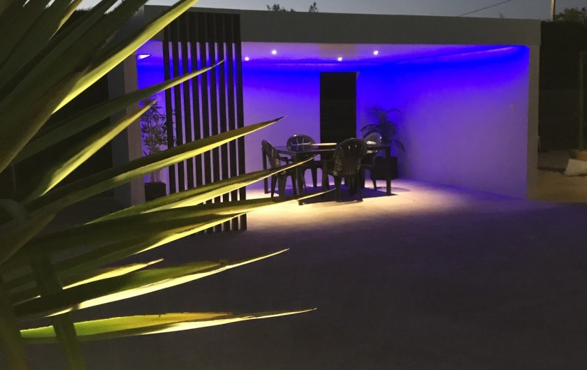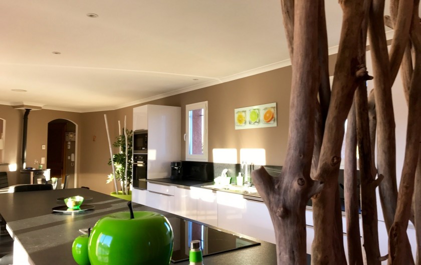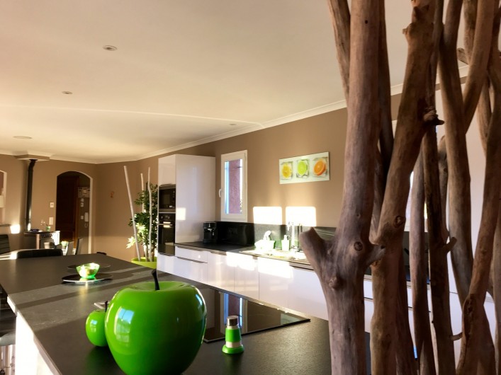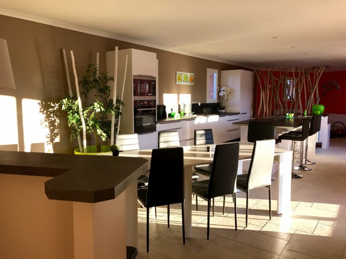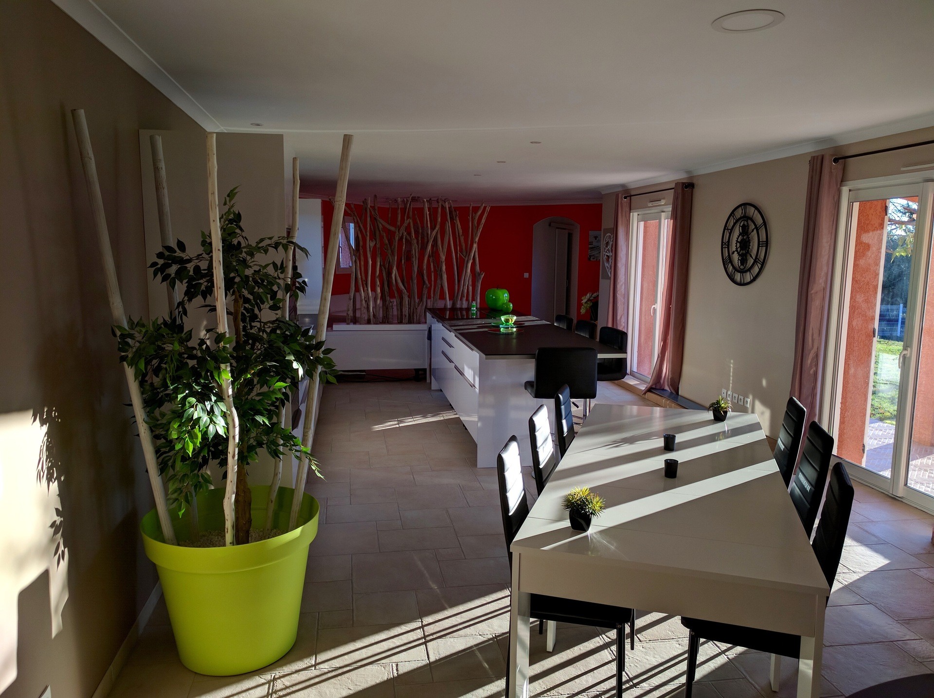 Villa lumineuse à la décoration moderne, soignée et de bon goût. Cuisine très moderne et poolhouse design pour vos repas à l’ombre en extérieur.