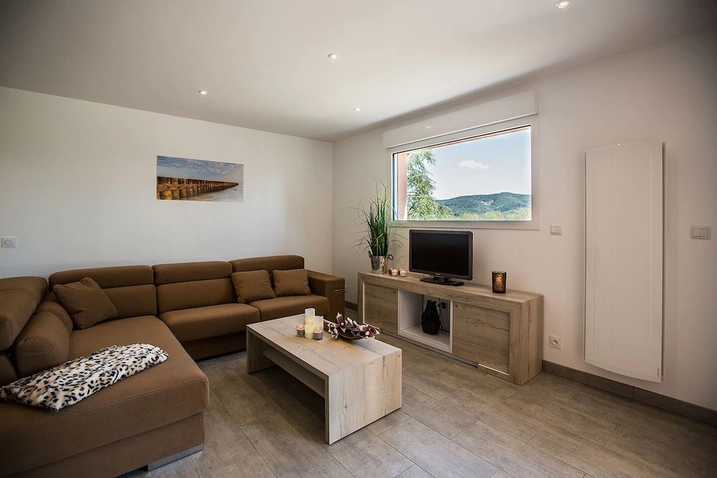 Villa neuve 95 m² tout confort pour 6 à 8 personnes avec terrasse 30 m² ombragée couverte. Piscine privée de 8 x4 m. Dominant les vignes de St Alban Auriolles, et vue sur le rocher de Sampzon. Le centre du village est à 800 m à pied ou vous trouverez toutes les commodités, superette, boulangerie, poste, bar, restaurants, etc...