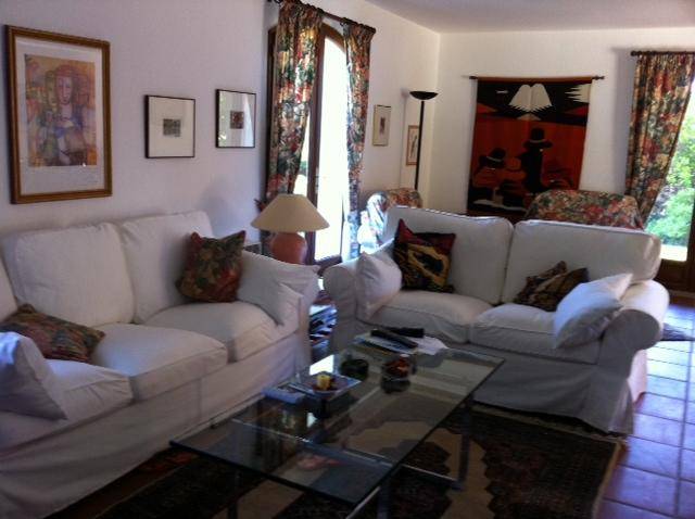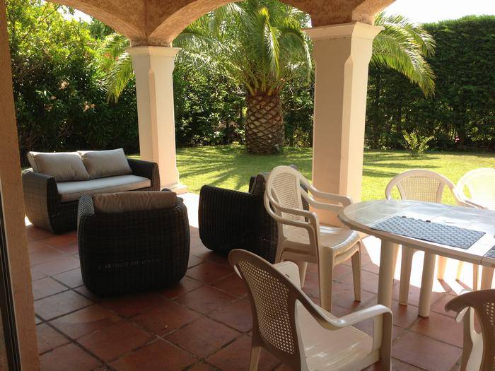Belle villa d'exception spacieuse, entièrement climatisée, située dans quartier résidentiel à 400 m des plages, terrain entièrement clôturé, beau jardin noyé dans la verdure, piscine et parkings privés, grandes terrasses à deux niveaux, dont une couverte faisant salon d'été, grand calme, intérieur très soigné.