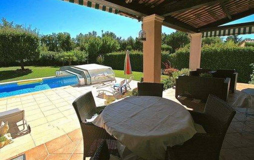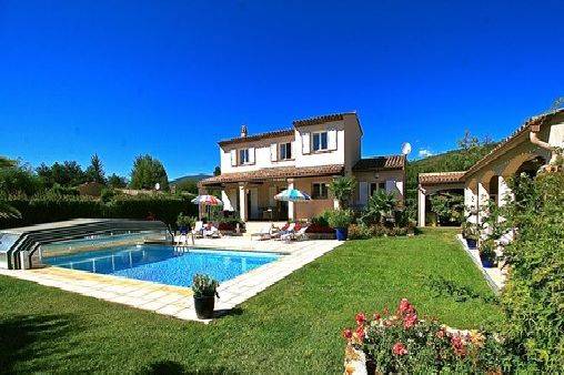 Location d'une villa privée avec piscine : loue à la semaine villa 8 couchages grand confort équipements ménéger complets villa sur terrain plat de 1500m. cloturé piscine de 10 x 5 couverte pool housse équipé d'une cuisine d'été d'un w.c. et d'une douche possibilité de stationner plusieurs véhicules dans la propriété environnement résidentiel et très calme. proche de toutes commodités. entre mer et montagne.