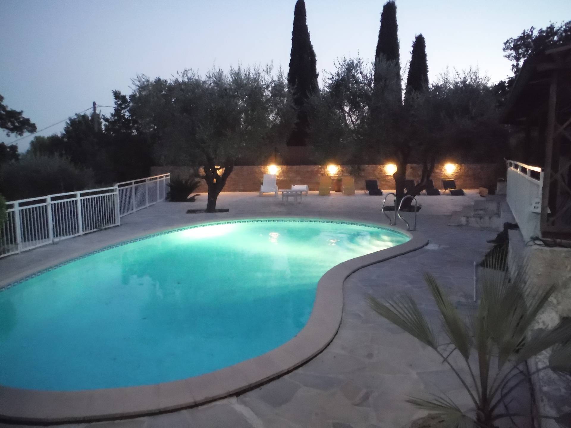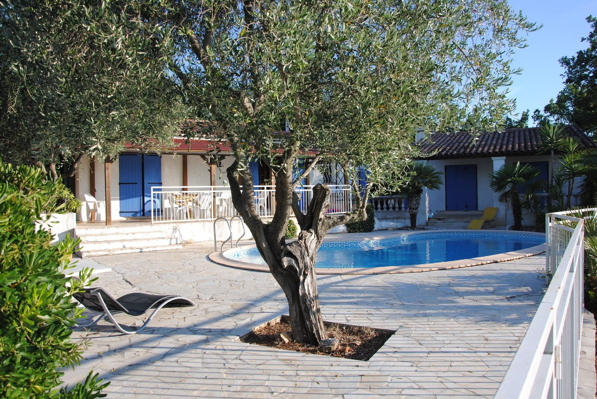 terrain de 2400m entièrement clos, une piscine privative forme haricot de 5x9m .Le séjour et les chambres donnent directement sur la piscine , 2 terrasses couvertes et une grande terrasse ombragée de 2 oliviers.