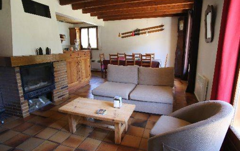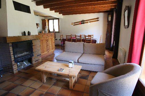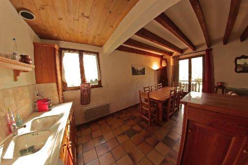 Dans un grand chalet appartement T4 de plein pied au premier étage 100 m2. Grand séjour de 30 m2 avec cheminée et cuisine équipée.