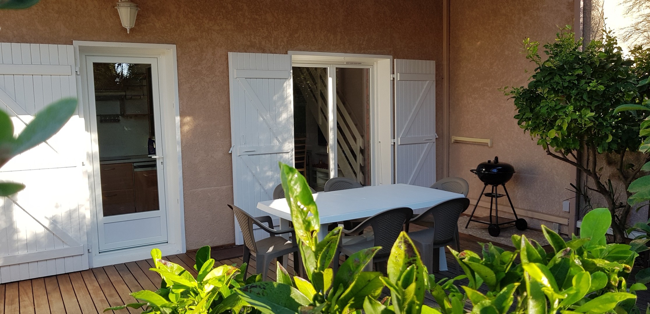 Terrasse extérieure de 30 m2 avec barbecue, salon de jardin, et store électrique
