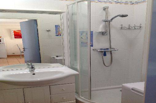 La villa est composée en rez de chaussée d'un séjour avec coin cuisine aménagé et équipé ( lave vaisselle...), d'une chambre (2 lits x90), d'une salle d'eau et d'un wc séparé. A l'étage se trouvent une chambre avec 1 lit 140, une salle d'eau avec wc.
