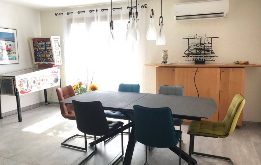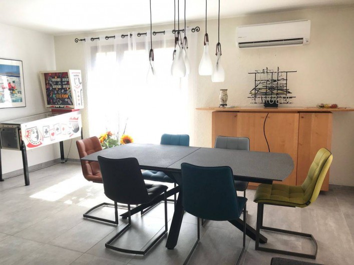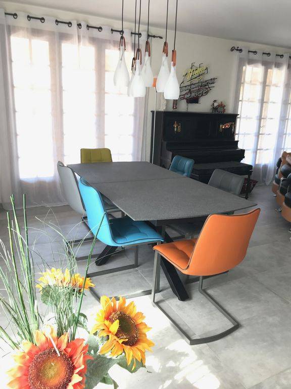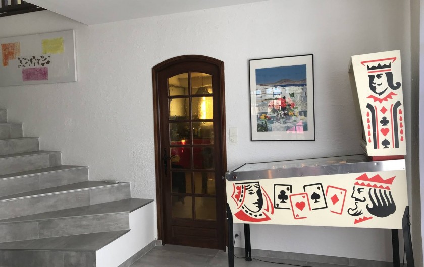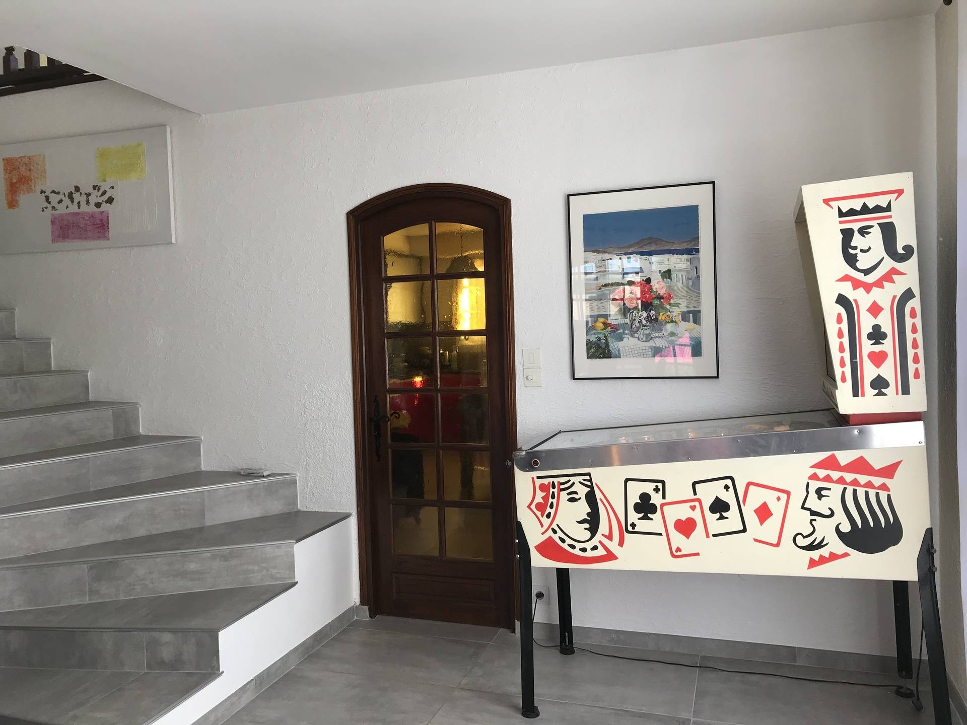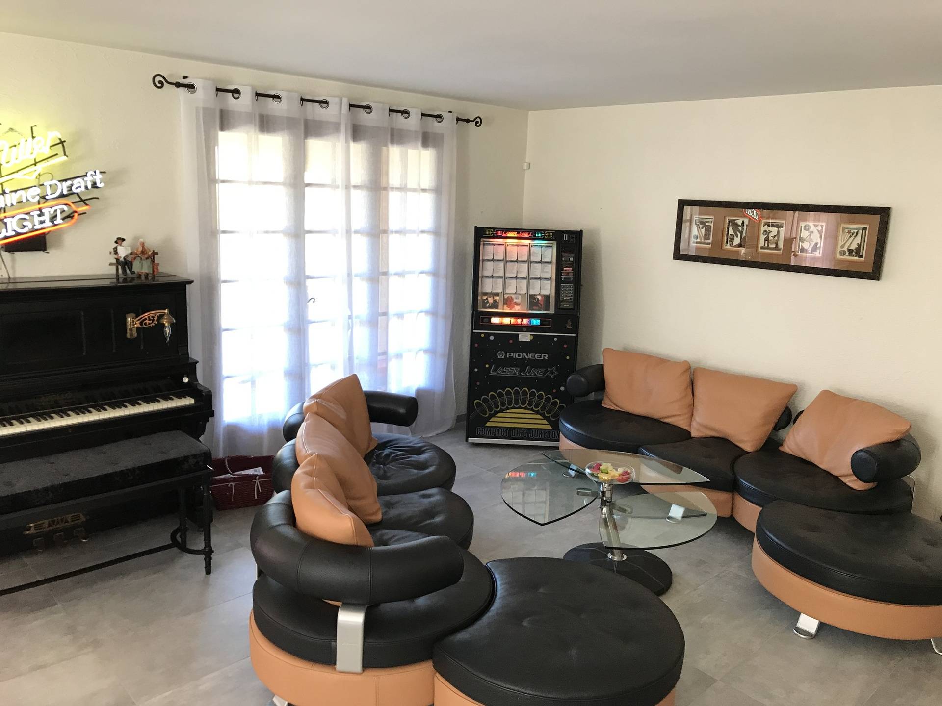 Au rez de chaussée, grande cuisine équipée de 20 m² et séjour avec piano ,flipper,