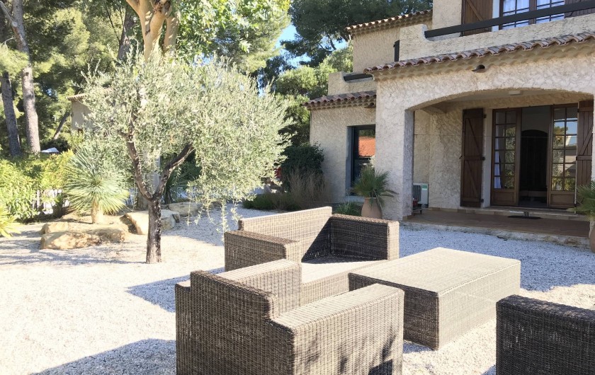 Dans le Var, à Saint Cyr sur Mer, entre Bandol et La Ciotat,Jolie Maison Provençale climatisée et agrémentée d'une très belle piscine de 11m x 5 dans joli jardin paysagé de 1000 m², avec terrain de boules ,et nombreuses terrasses ,140 m² habitables répartis sur 2 niveaux pouvant accueillir jusqu'à 8 personnes dans 3 belles chambres.