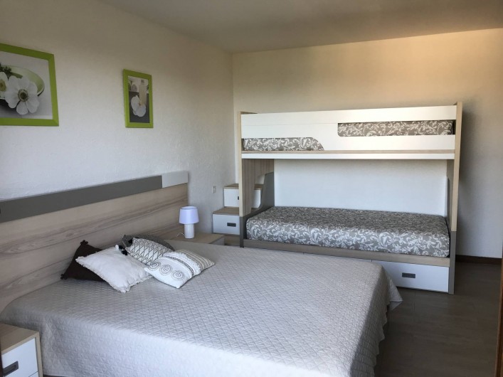 - la seconde de 15m² environ équipée d'un lit en 160x200 et de 2 lits en 90x200 superposés ,