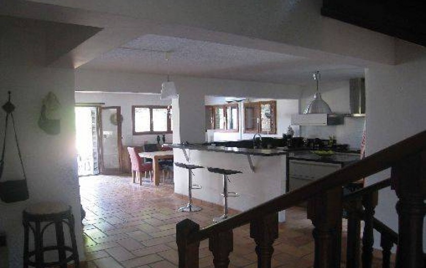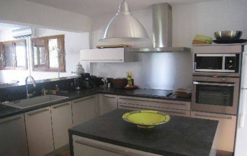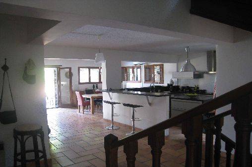 Grande terrasse. Salon séjour d'environ 80 m2, cuisine américaine toute équipée, (lave vaisselle, lave linge et sèche linge, four, micro-ondes, plaques vitro céramiques, petit électro ménager).